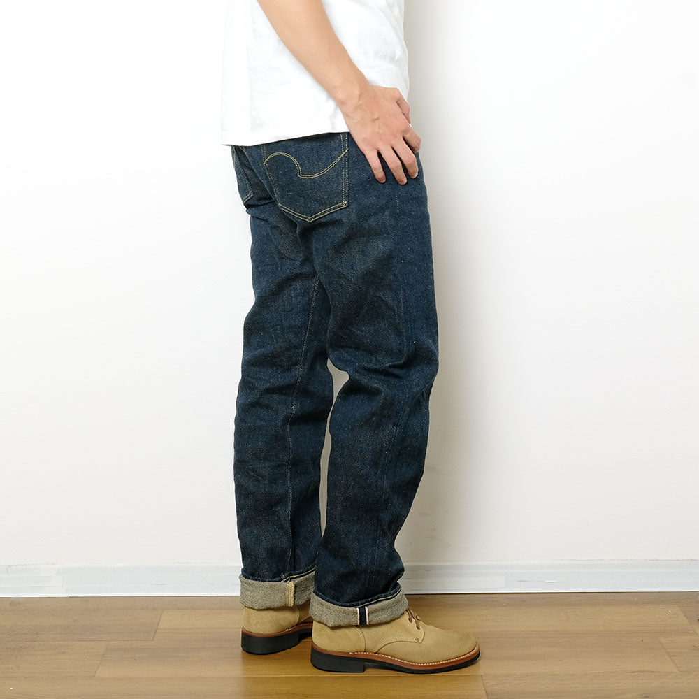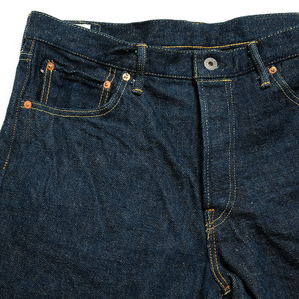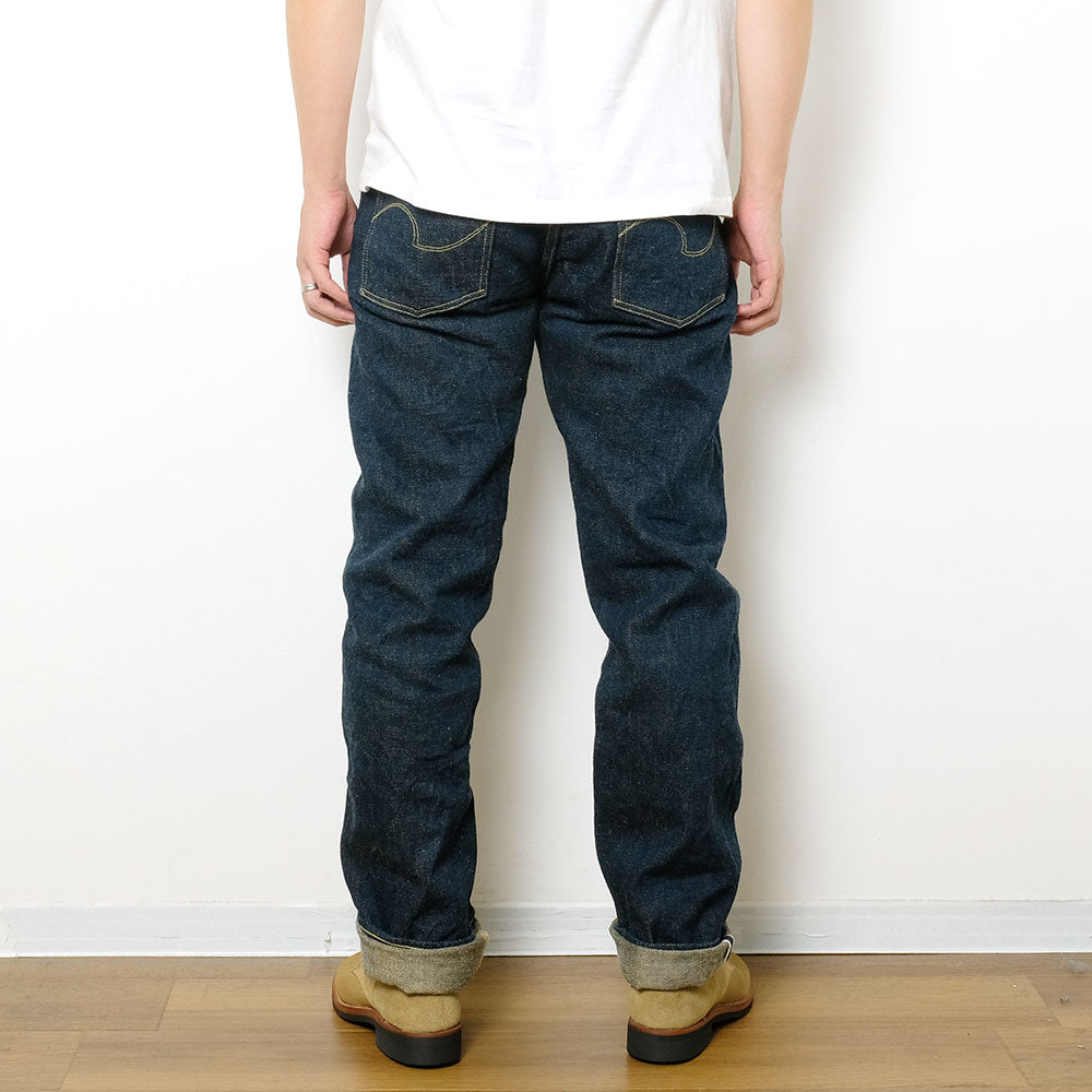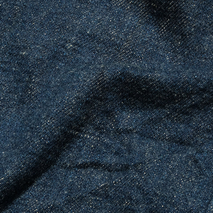 • Oni Denim's "ONIHI" fabric that is wrapped in a secret veil in the manufacturing method, factory, and so on. An indigo with a greenish tint as if it was discovered in dead stock. The texture of the rough fabric. Probably a material that can only be found on Oni Denim. There is no announcement about the fabric, but what you can see is the strength of the thread "nep". Randomly arranged from very thick yarns to fine count yarns, the tension of the yarns was lowered to the limit that the power loom can withstand and woven. It's a heavy ounce of 20 oz, but it's finished in a crunchy texture with strong irregularities. The warp threads are greenish and the weft threads are dyed in beige. As a result, when the denim fades, it gives off a vintage-like oxidized look. The silhouette is regular straight. The linear silhouette reminiscent of the good old days makes you feel the original masculinity of jeans.