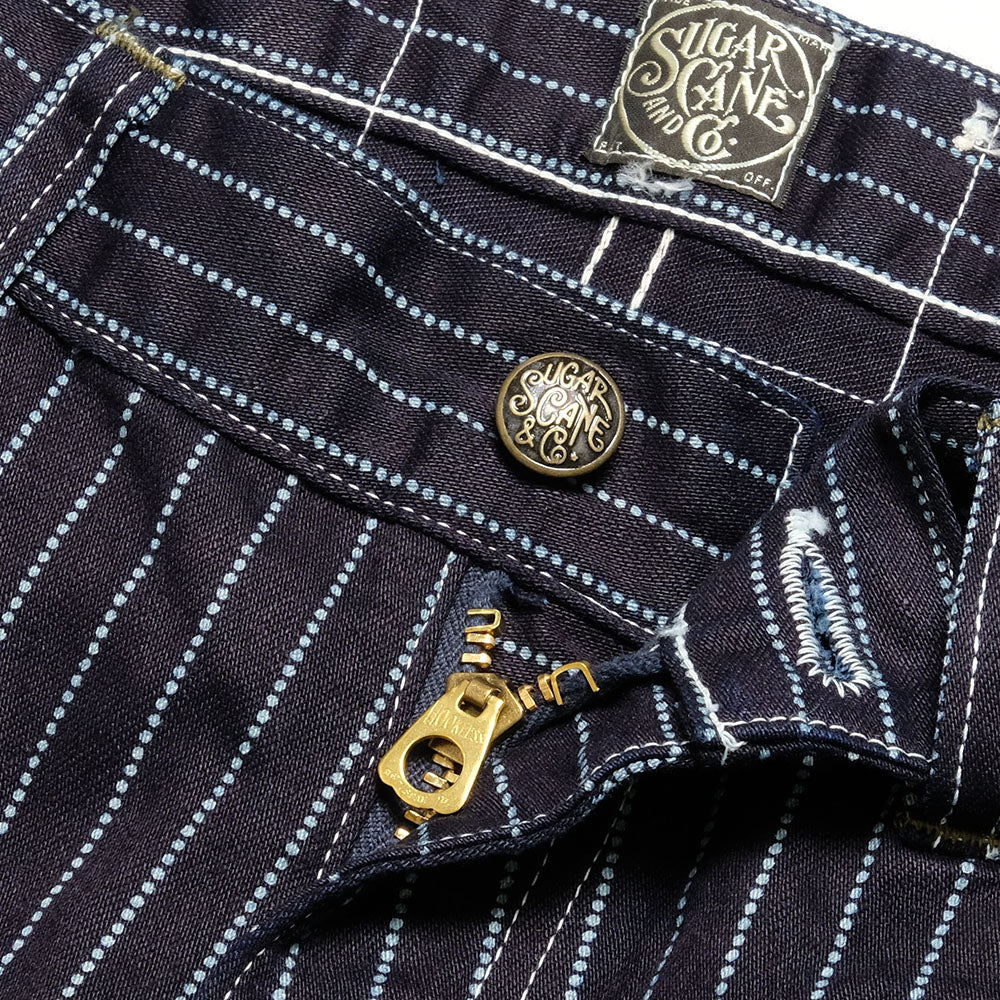 SUGAR CANE FICTION ROMANCE 9oz. WABASH STRIPE ZIP FLY SHORTS SC51443