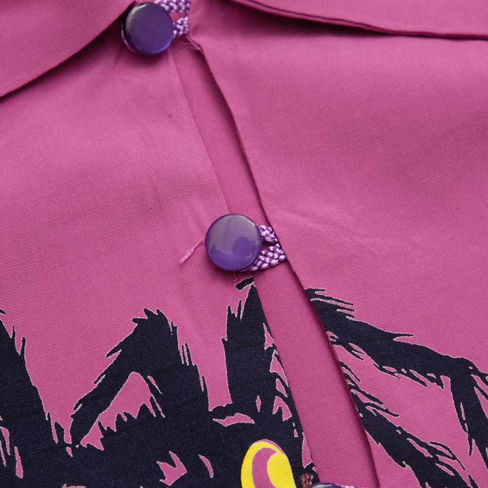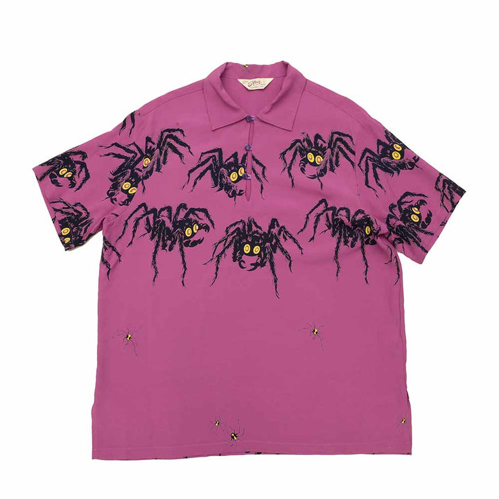 Based on those precious actual items, "Tarantula", one of the five major works, was completely reproduced this season. This avant-garde design consists of four tarantulas and one small spider. The grotesque motif of a poisonous spider covered with hair is sublimated into pop art by comically depicting the eyes. The vintage version has only two types of eye colors (red and yellow), but the yellow eyes on the purple body and the pink eyes on the mint green body are used. Its original color schemes bring out the charm of the shirt.
