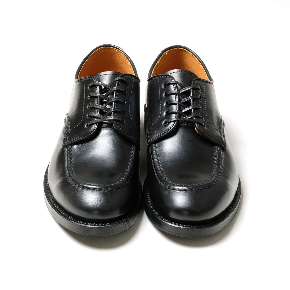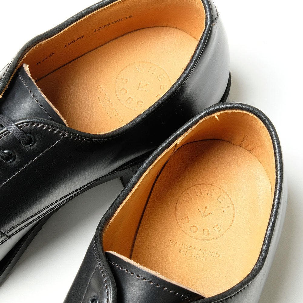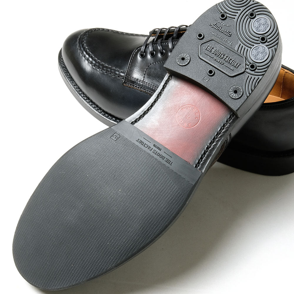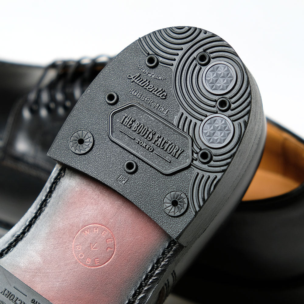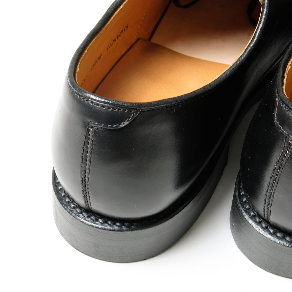 The leather is Horween 2.2mm thick chrome Excel Leather. It is a material that fits well on your foot and the aging can be enjoyed as small scratches would not stand out when polishing it. It adopts "Goodyear Welt Process", and the sole is the combination of a single leather sole and half rubber. Also, the "THE BOOTS FACTORY" is used for the heel. The sole with two dots, which is reminiscent of work boots at good old days, will surely grip even on slippery roads. It is the casual style shoes, but it has also semi formal texture, so it can be matched to any outfits.