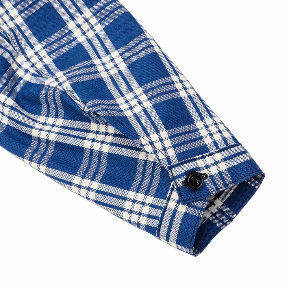 • Indigo plaid fabrics, which have already been around since the end of the 19th century, are mentioned as being made by the Amoskeag company in mail-order catalogs around the 1900s. Until then, fabrics had been sold by the cut at garment supply stores, so there were many plaid fabrics that were homemade, such as women's dresses, etc. In the 1880s, when Montgomery and Sears listed their clothing in their catalogs as “ready-to-wear” with a choice of sizes, it spread throughout the U.S., and many workers wore them. Photographs from the era show cowboys, railroad workers, food workers, and even Native Americans wearing them. This blouse, reproduced by WAREHOUSE, is still pastoral in its construction, and although the fabric lattice shows a straight line, it also has a front placket, cuffs, and waistband, and is designed to fit the body while being worn.