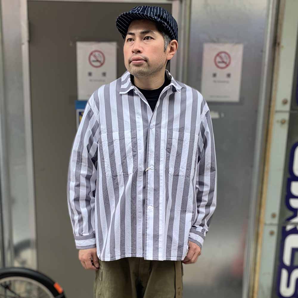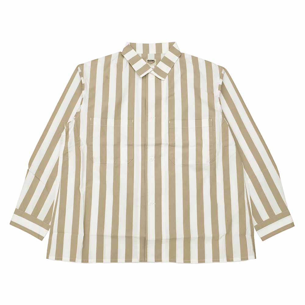 • This shirt is made of crisp shuttle notes fabric. The slightly thicker stripe pattern matches the relaxed silhouette. It is a long-sleeved shirt unique to "BARNS."