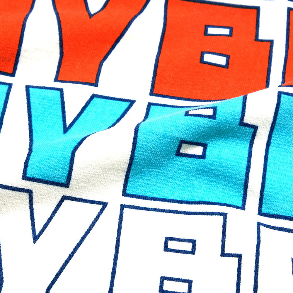 • This exclusive T-shirt is made by "BARNS" for HINOYA. The fabric is open-end cotton jersey. Open-end yarn, which is spun using air pressure, contains a large amount of air between the fibers, giving it a fluffy, voluminous feel and a dry, rough texture. This technique was often used in old USA-made T-shirts, so it has a similar feel to deadstock T-shirts. The print design is inspired by 1970s sports brands. HINOYA's signature colors are gradient-colored to create a retro look. The body is approximately 6.5 oz. with a sturdy texture. Additionally, the neckline features a double-binder neck. This is a labor-intensive special sewing method, but by securely sandwiching the fabric between two layers of reinforcement material, the neckline remains resistant to stretching and deformation even after repeated washing, making it a durable T-shirt. Furthermore, this custom order includes a brass plate made by BUTTON WORKS. The plate, with its smoky, retro-inspired design, can also be used as a keychain. Although available in limited quantities, this T-shirt is a special piece crafted with meticulous attention to detail, from the body to the print.