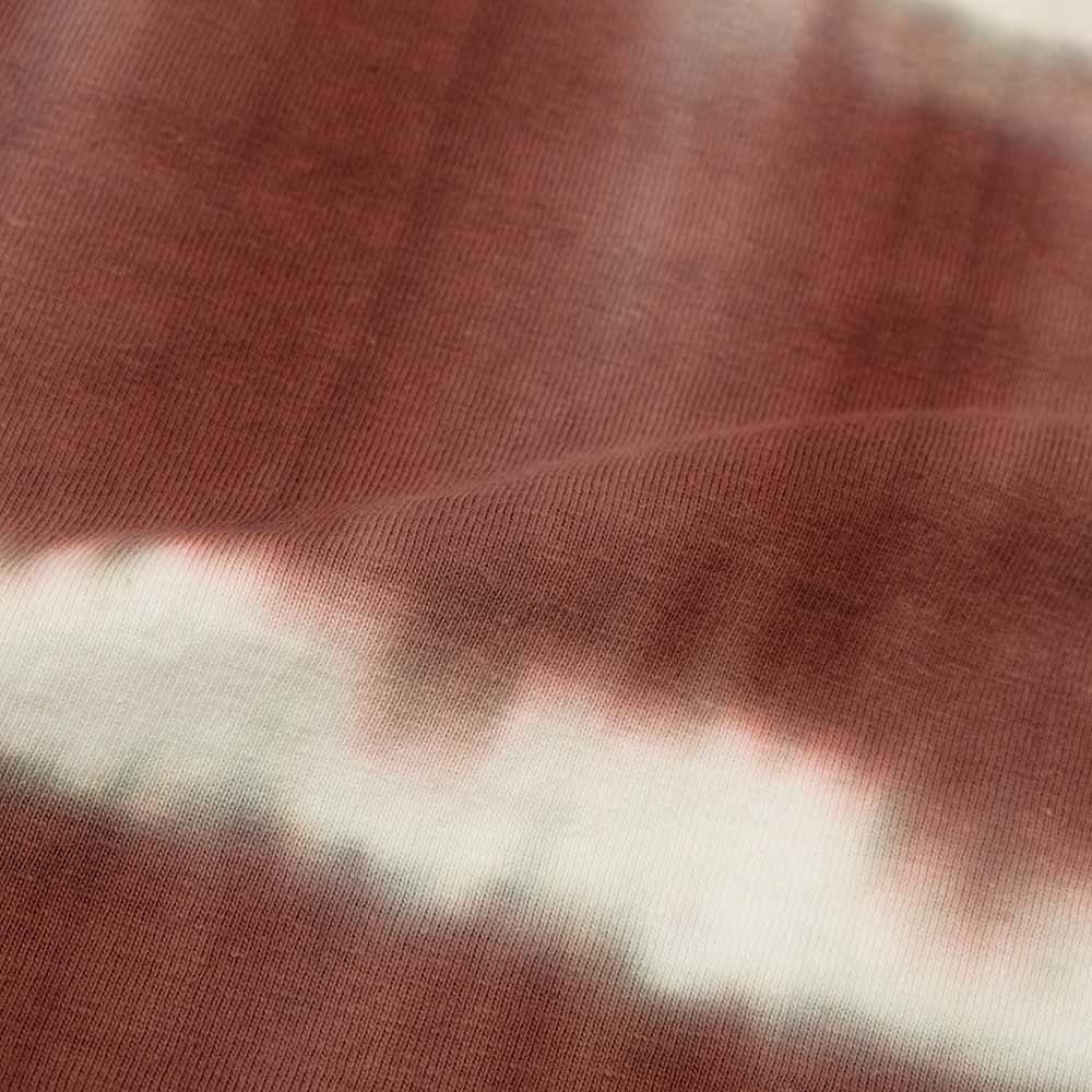 • This T-shirt features delicate lines created by craftsmen using a tie-dye technique. The unique mottled texture and blurred lines of the tie-dye are distinctly different from typical stripes, making this T-shirt stand out even when worn by itself. It is made of 7.7 oz recycled cotton jersey fabric. With a loop-wheeled body knitted from recycled cotton on a vintage knitting machine and a binder neck, this is a unique T-shirt typical of "DUBBLE WORKS".