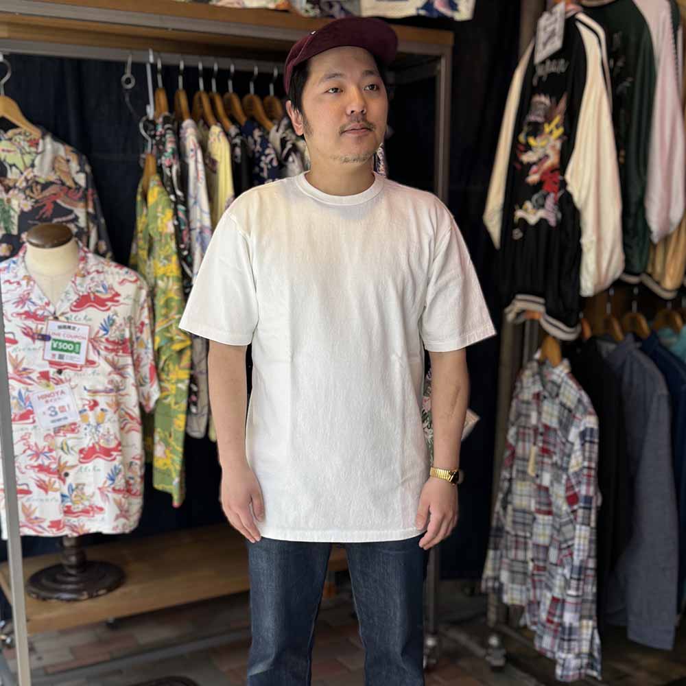 • The DUBBLE WORKS standard T-shirt “HEAVY WEIGHT” is knitted in high density with a thick 8-count yarn. It has the tough look due to the thick count yarn and the comfortable feeling, and is cool even when worn by itself.