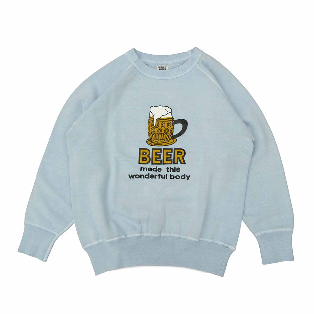 • "DUBBLEWORKS" is a brand that retains vintage details while making products that pay attention to trends. This raglan crew sweatshirt "BEER" is made of the "DUBBLEWORKS" original body. Made in Japan, the fabric with a brushed lining is washed for a soft and comfortable feel. It is a loop-wheeled body and has prints on the front only. This sweatshirt has a vintage-like feel typical of "DUBBLEWORKS".