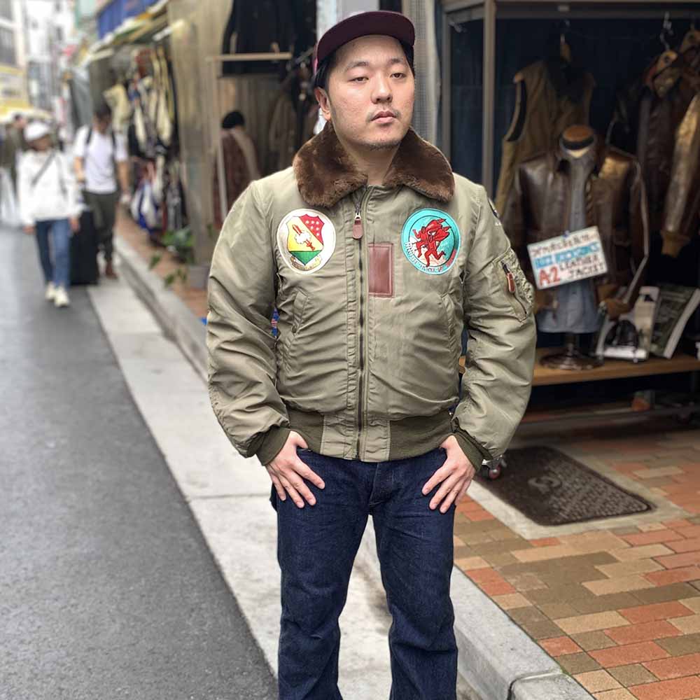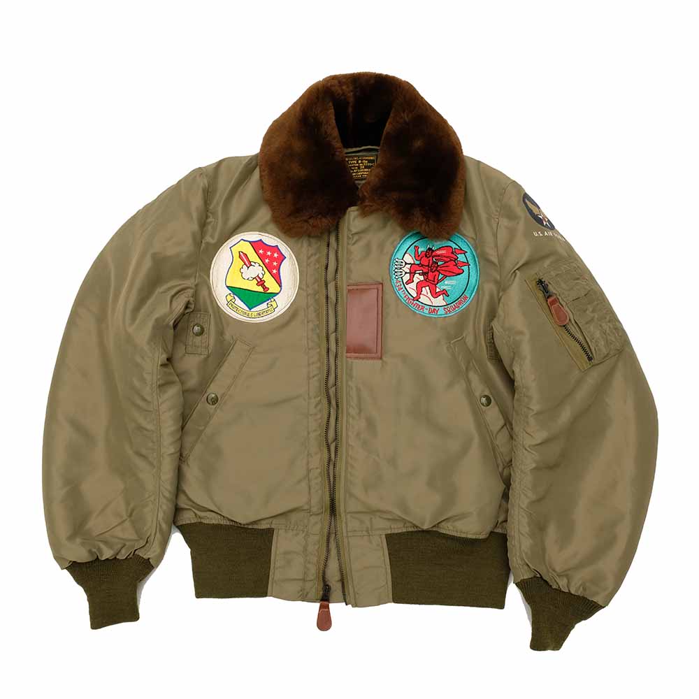 • This Type B-15B with squadron patches is reproduced by "Buzz Rickson's" based on vintage. The 479th Daytime Combat Squadron, established on February 15, 1954, was a prestigious unit that conducted air defense activities before overseas missions and is still active today. Equipped with the state-of-the-art F-100A Super Sabre aircraft, the unit was committed to its mission in response to the Cold War era. The 434th Daytime Combat Squadron's emblem is a bright turquoise blue with red devils, a vivid color scheme, and excellent design. The 479th Daytime Combat Squadron patch on the right chest is multicolored and gives the camouflage-colored fighter a glamorous re-imagining. This jacket is a fine example of the full effect of the patch customization.