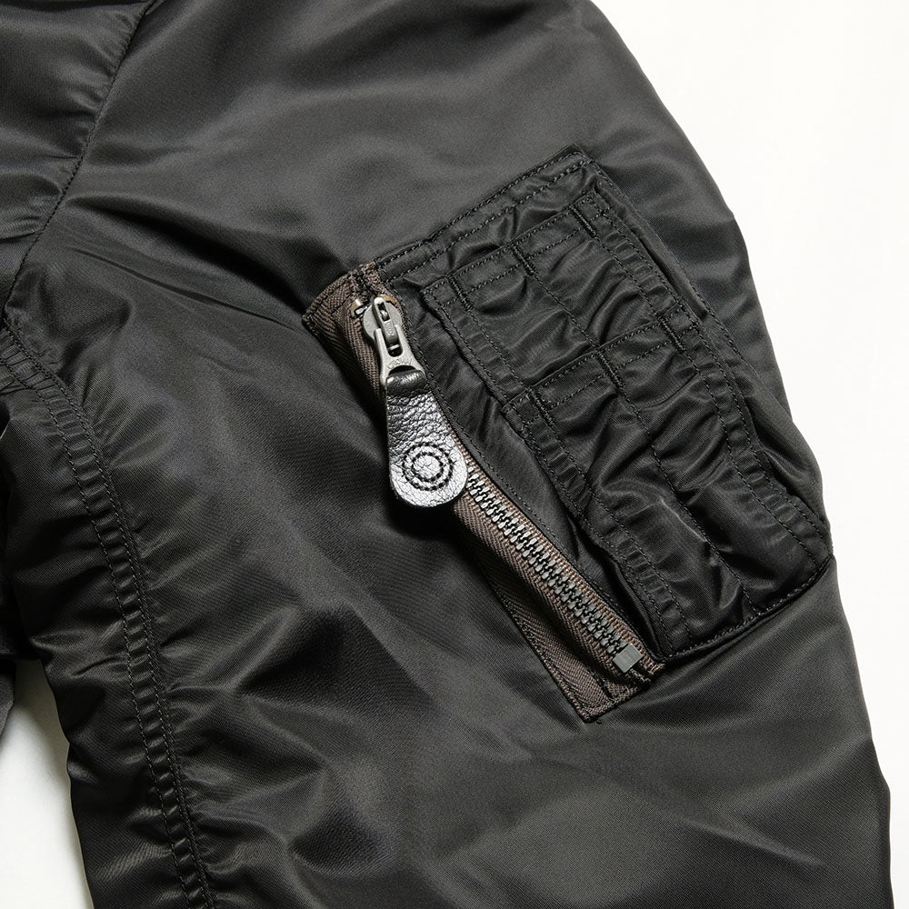 This jacket is a faithful reproduction of the vintage jacket, so please handle the parts with care. In particular, the zipper may be damaged if it is forcibly raised or lowered. When pulling up the zipper, be sure to pull up the metal part of the zipper slowly and carefully. Please do not pull the leather string forcibly.