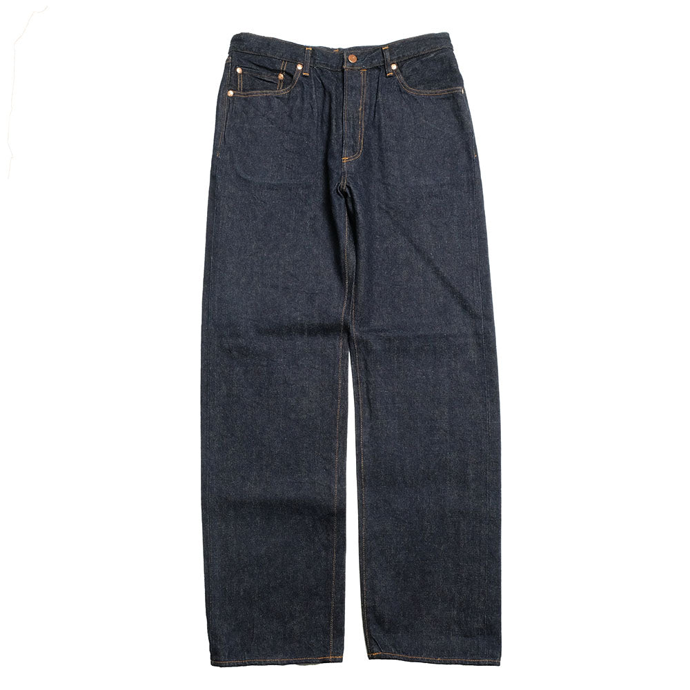 • The new premium denim, “ISHIKAWADAI”, made of 100% SUVIN GOLD, the finest Indian cotton, has been released from BIG JOHN. One of the rarest cottons in the world, 100% SUVIN GOLD cotton, is used. The yarn is produced on a spinning machine called “ISHIKAWADAI,” made in 1953 by mixing first and second picked raw cotton with waste SUVIN GOLD cotton. The yarn's rich fluffiness and rough texture differs from that of yarns made on modern computer-controlled spinning machines. The power loom used is a vintage Toyoda Automatic Loom Gl-3 machine. The 14-oz. selvedge denim has a pleasantly rough texture and suppleness, yet solid texture. The silhouette is a traditional straight fit. It is a classic straight fit with a slightly high rise and a relaxed fit. These BIG JOHN jeans are a fusion of traditional and modern styles.