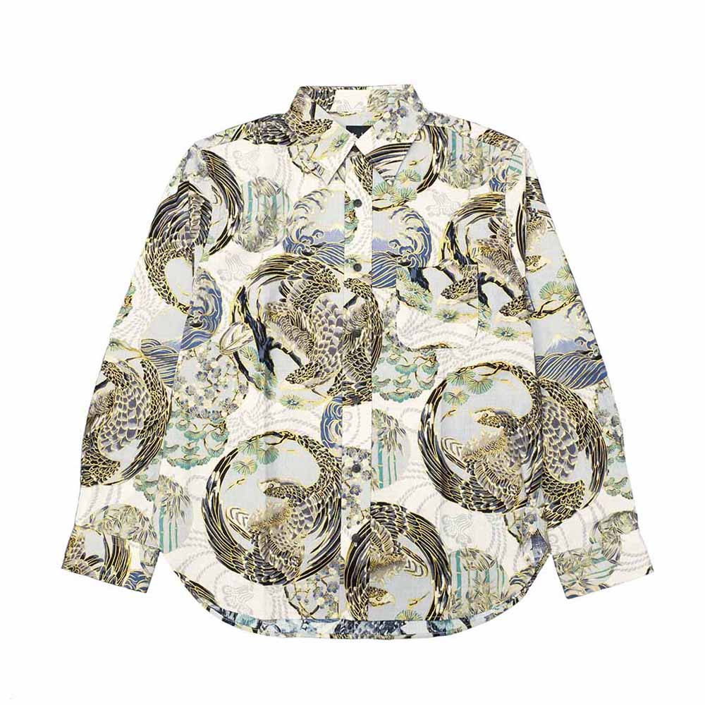 • "KOROMO ZAKURA" focuses on traditional Japanese design. This long-sleeved regular shirt, "Hawk depicted with Japanese traditional technique, KINSAI-style", is made of a comfortable, smooth-to-the-touch "Southern Cloth". The oriental design is typical of KOROMO ZAKURA. It is a long-sleeve regular shirt with a clean silhouette. It is a unique shirt that makes your outfit more stylish.