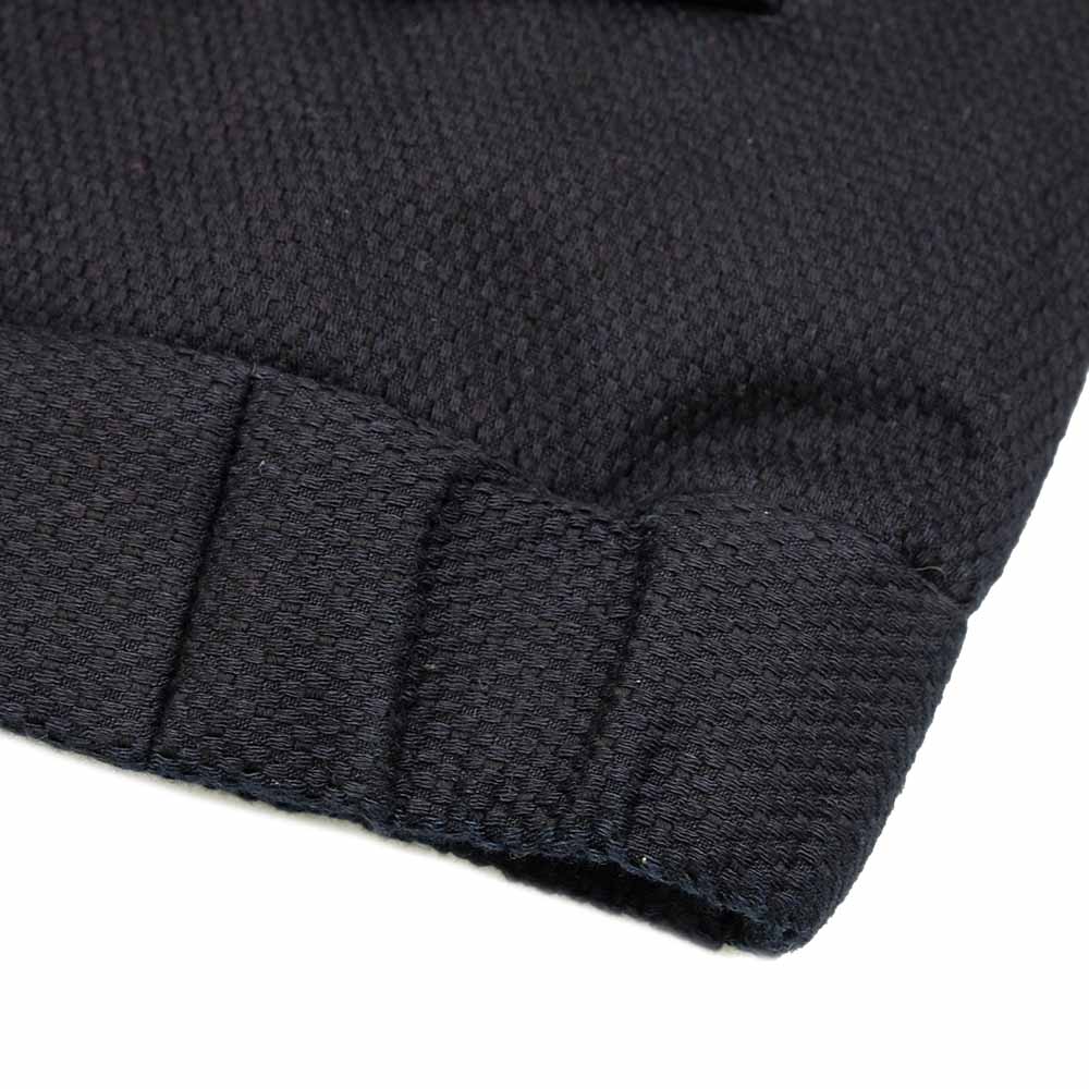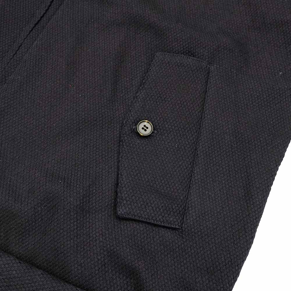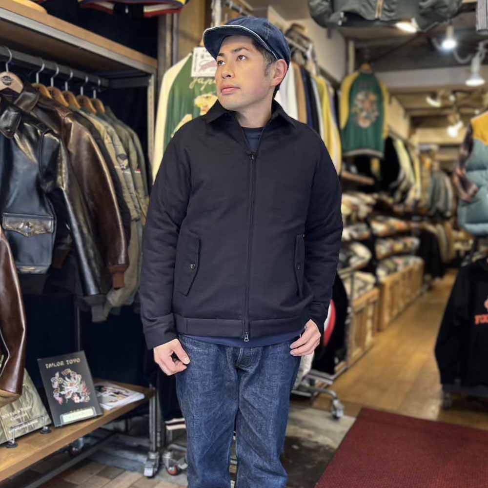 • "MOMOTARO JEANS" has created an original light Sashiko fabric using 2/60 wool yarn for the weft (using a Jacquard loom that can use indigo yarn, of which there are only a few in Japan). Also, quilting is adopted for the lining. The front is zippered, the neck with a chinstrap, pockets with flaps at the waist, and an umbrella-shape yoke at the back. This Jacquard jacket is slightly shorter in length and has a wide silhouette.