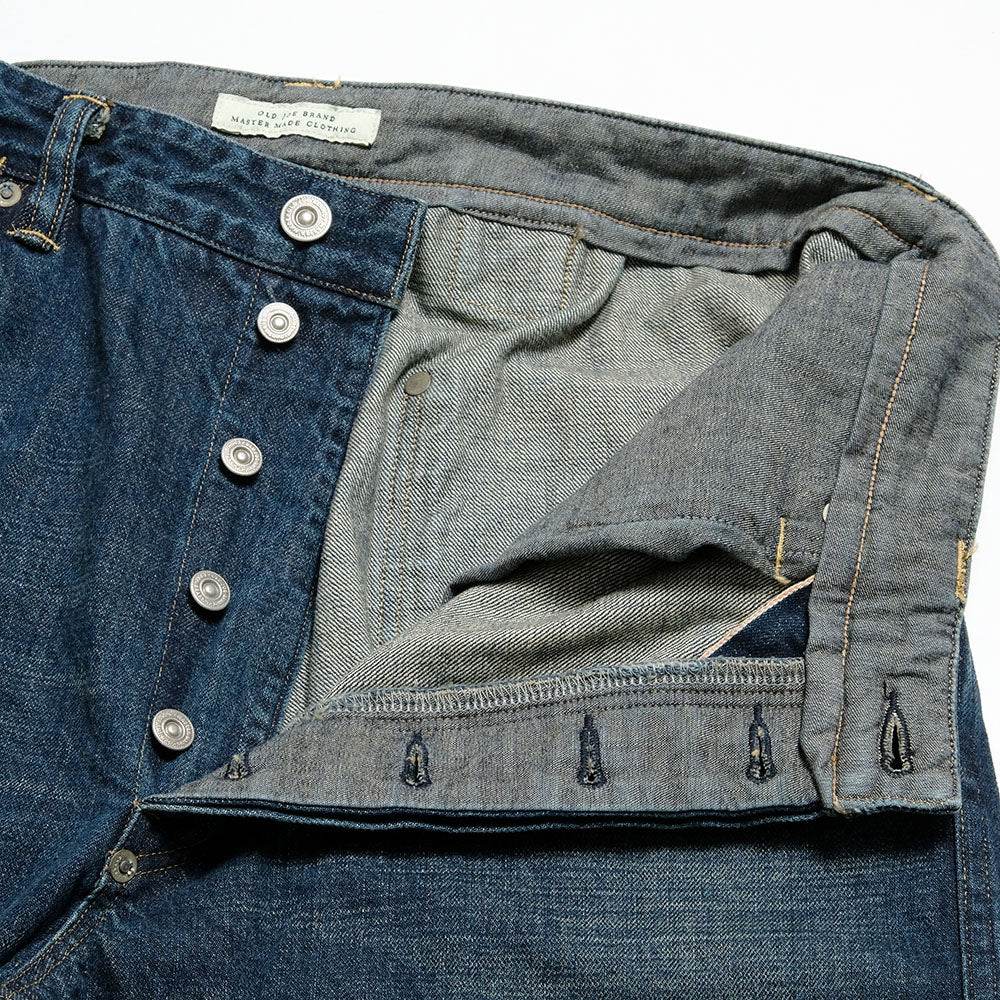 OLD JOE BRAND's standard denim, 946, has a straight silhouette with a relaxed rise. The yokeless, back style with a cinch back, and slit coin pockets is reminiscent of workwear from the 1930s, giving it a very classic look. The fabric is 12oz. selvedge denim. The fabric is woven with the same yarn count warp and weft and has a fine uneven texture. Used wash is also a natural finish.
