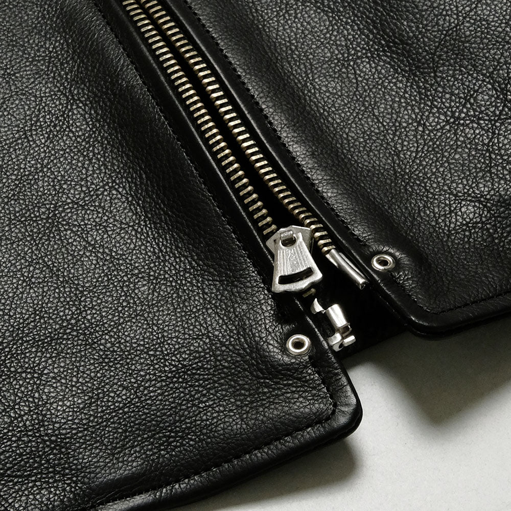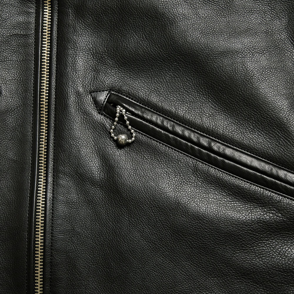 • Unlike the tough appearance of horsehide, this jacket is made of baby calf with an elegant, dull luster. The fabric is the baby calf from a prestigious Italian tannery. The leather is milled (a finish in which few chemicals such as colorants are used on the leather after dyeing), making it a superb material with a high-quality texture and the ability to age. The lining is made of wool cashmere fabric produced by M.T.R., an integrated production company from the selection of raw materials in the Prato region of Italy. The soft texture and beautiful colors created by the beaver finish further accentuate the overall appearance of the jacket.