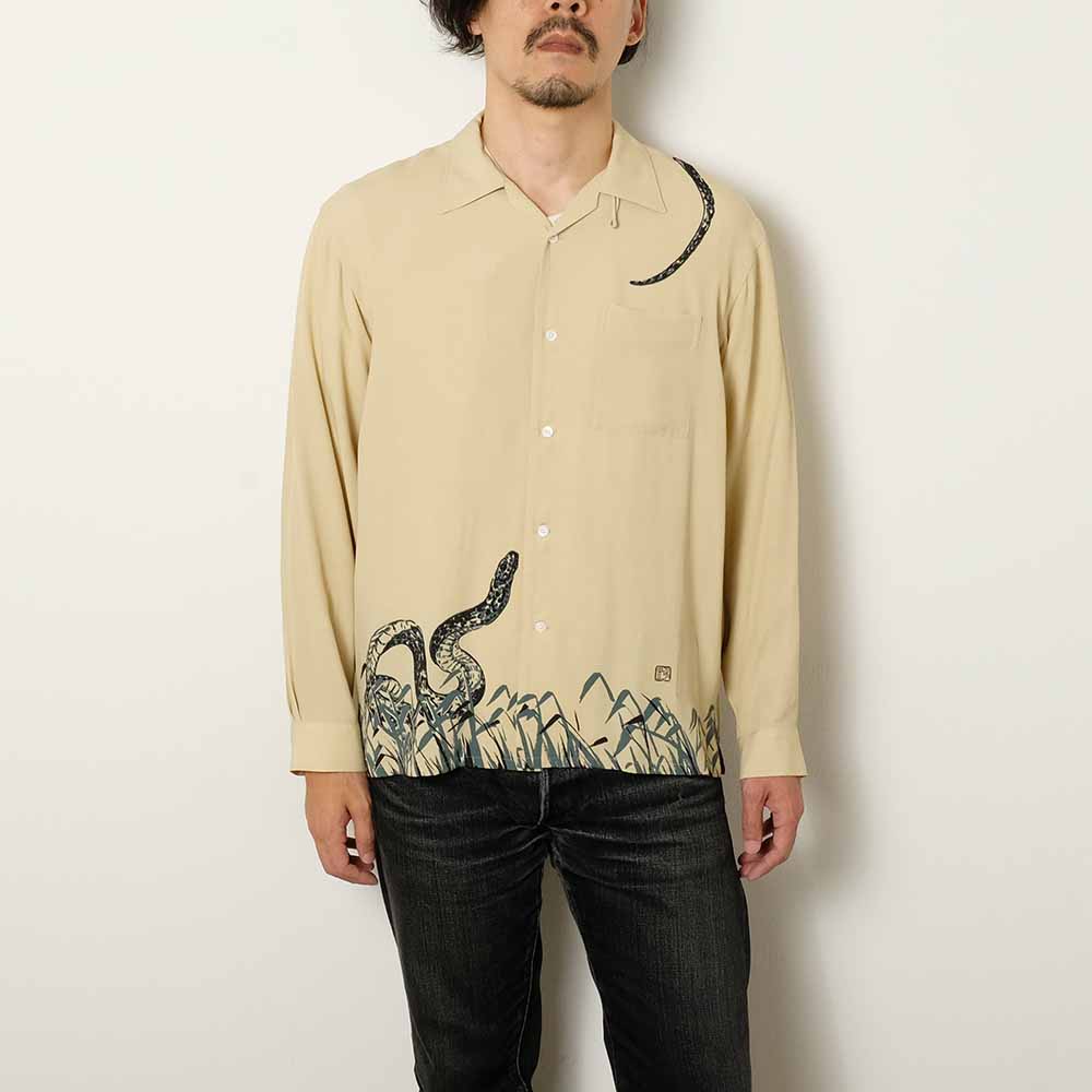 ORIGINAL PRINTED OPEN COLLAR SHIRTS "Hebi(Snake)" Long-sleeve