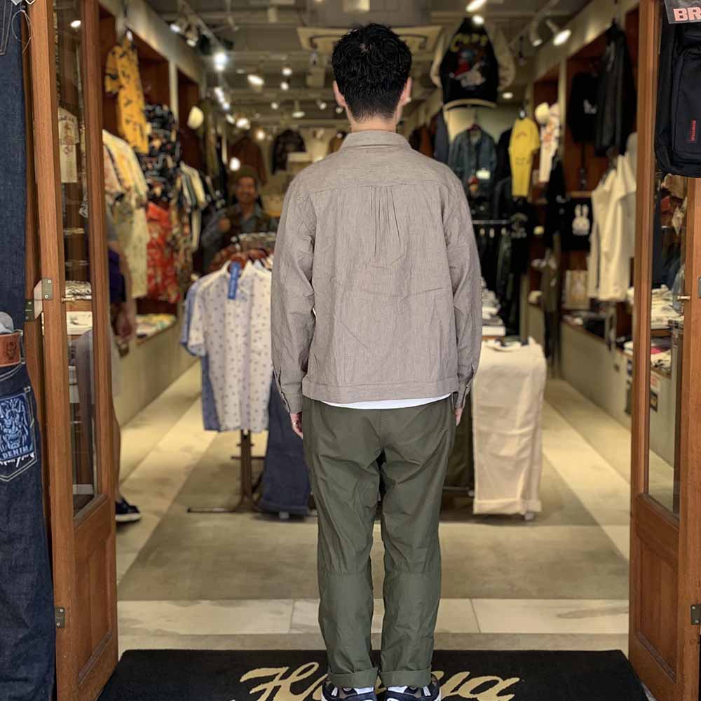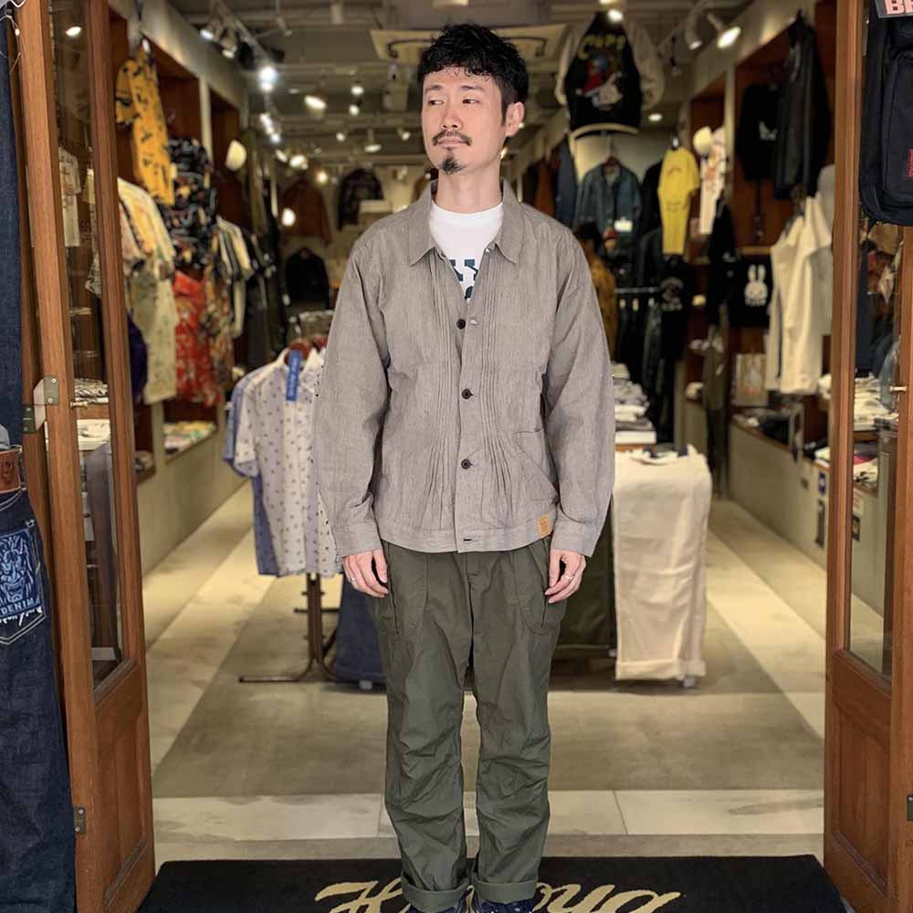 • This jacket is made based on a denim blouse from the early 1900s, known as the “1st type”. It is quite simple, with only one pocket on the lower left side. Pleats on the front and gathers on the back give it more room and a higher range of motion. These details form the appearance of this garment and make the vintage look more remarkable. The lightweight material makes this blouse jacket comfortable to wear and you can enjoy aging it.