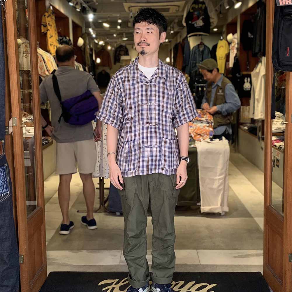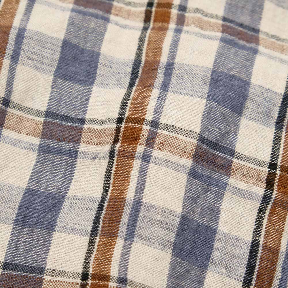 • This plaid shirt is inspired by the vintage Havana shirt. The origin of the Havana shirt is not known, and various theories exist, including that it was a work shirt for sugar cane farmers. This design focuses on fine pin tucks, and the tucks on the collar and yoke are superbly aligned, which is particularly outstanding. In addition, the china buttons made with the same fabric on the front add further charm, giving a distinctive appearance typical of the Havana shirt.