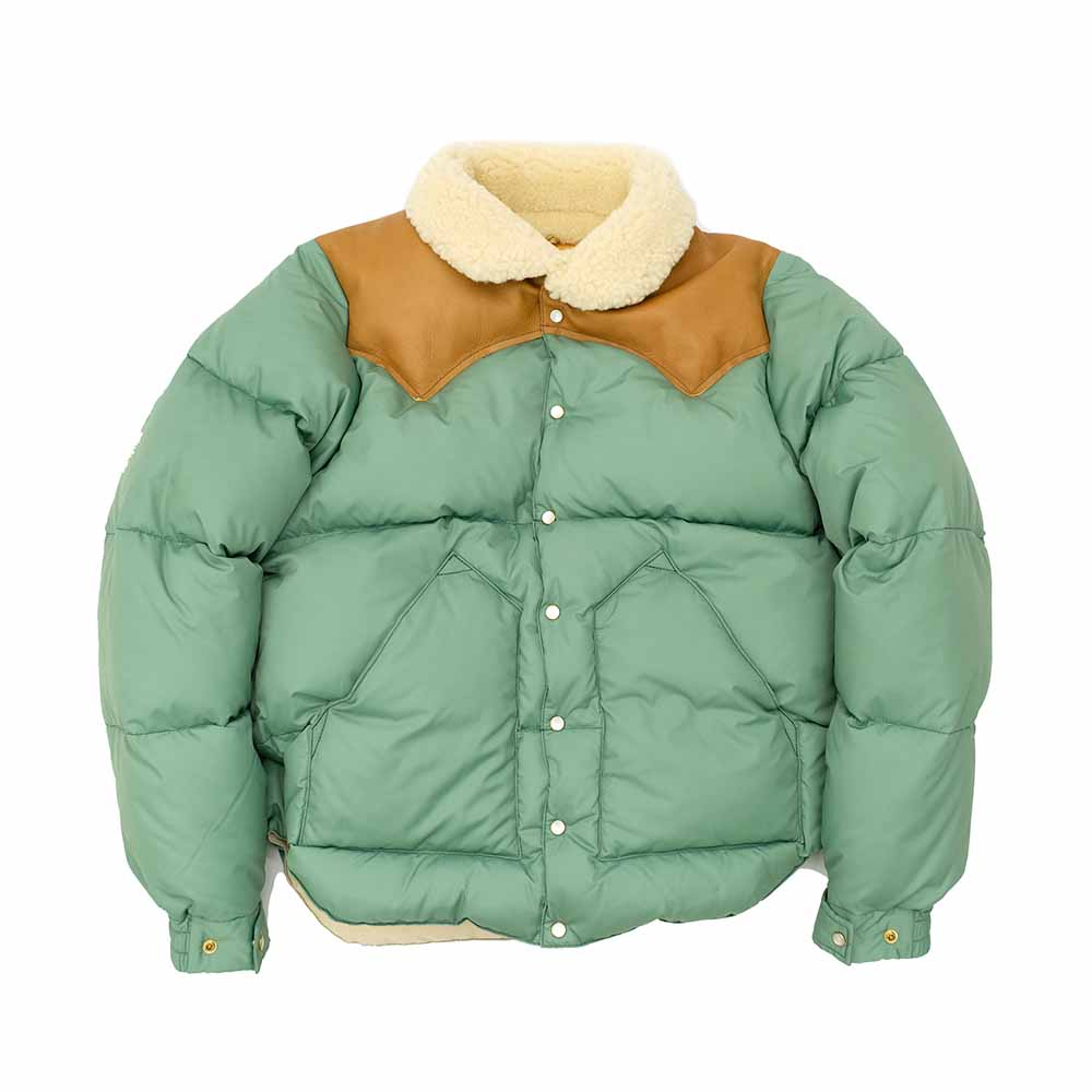 • Rocky Mountain Featherbed's masterpiece item, the CHRISTY JACKET, is the brand's signature model with its single-piece yoke leather and natural mouton collar. The outer and inner lining are made of the original 70-denier nylon taffeta developed when the was revived. This nylon taffeta, which has been faithfully reproduced after researching vintage, has the functionality of a down pack, and its three-layer construction provides lightness and excellent heat retention. The water-repellent down from Europe is used. Normally, the down loses its heat-retaining ability when wet, but "Rocky Mountain" has applied a water-repellent finish to the down itself to achieve specifications that allow it to maintain its heat-retaining ability even in inclement weather. The exquisite ratio of 90% down and 10% feathers boasts a high heat-retaining capacity of 700-FP and has achieved surprising lightness and heat-retaining properties. The leather of the yoke part is tanned with tannin and chrome. By dyeing the leather, the leather's natural texture is preserved and the leather is highly durable.
