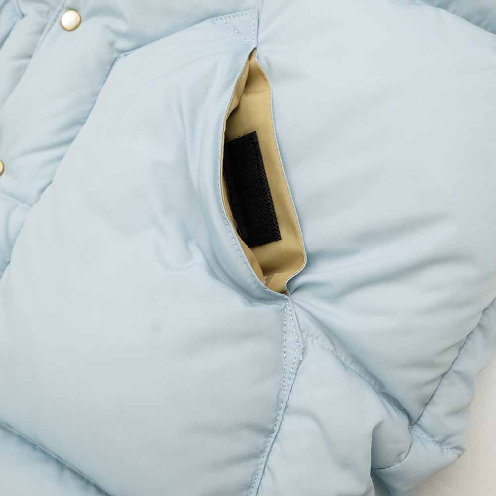 • To take advantage of the properties of the down, the fabric must be breathable. Therefore, popping out of feathers is inevitable. Also, feathers may pop out from the sewing parts. Please understand this as a characteristic of the product.