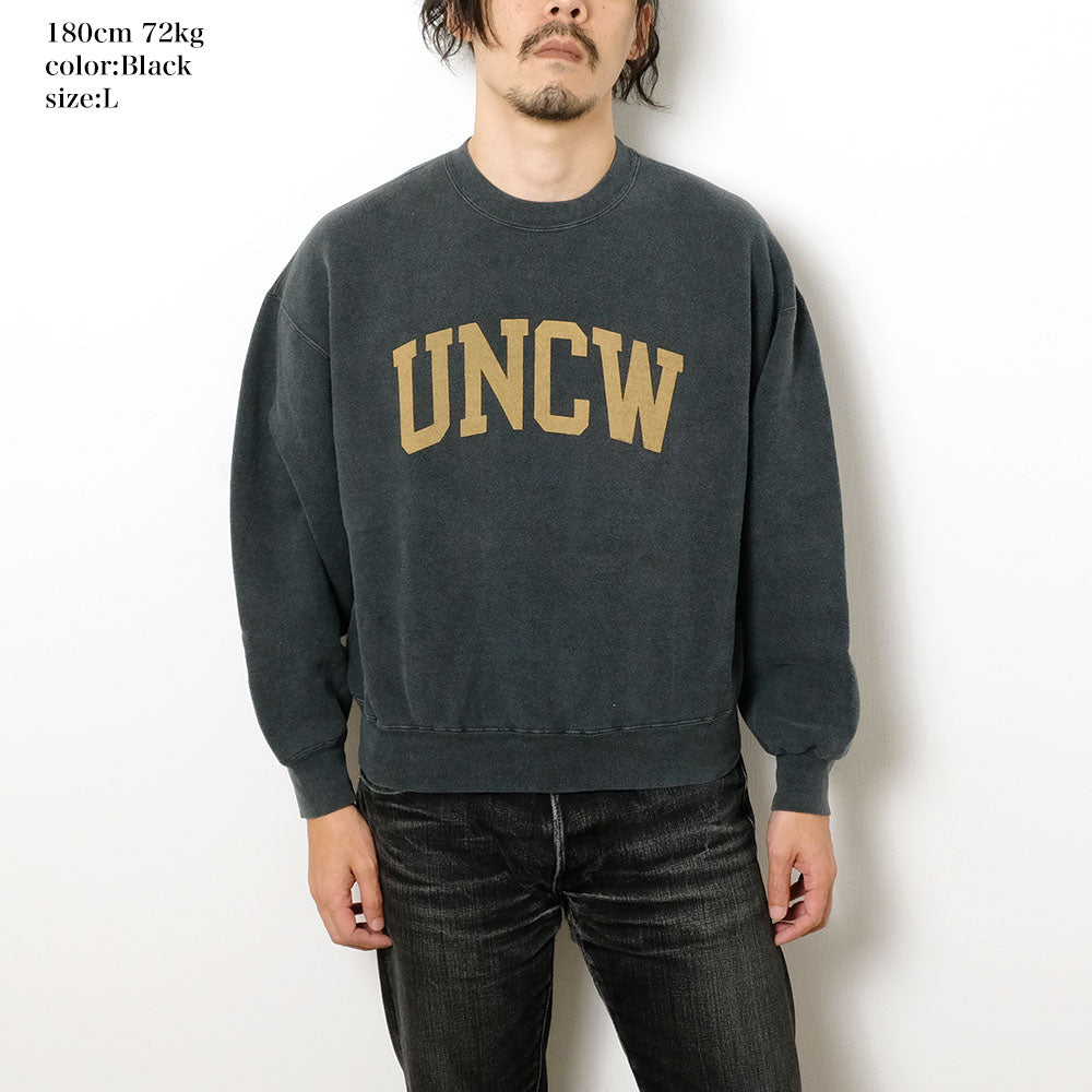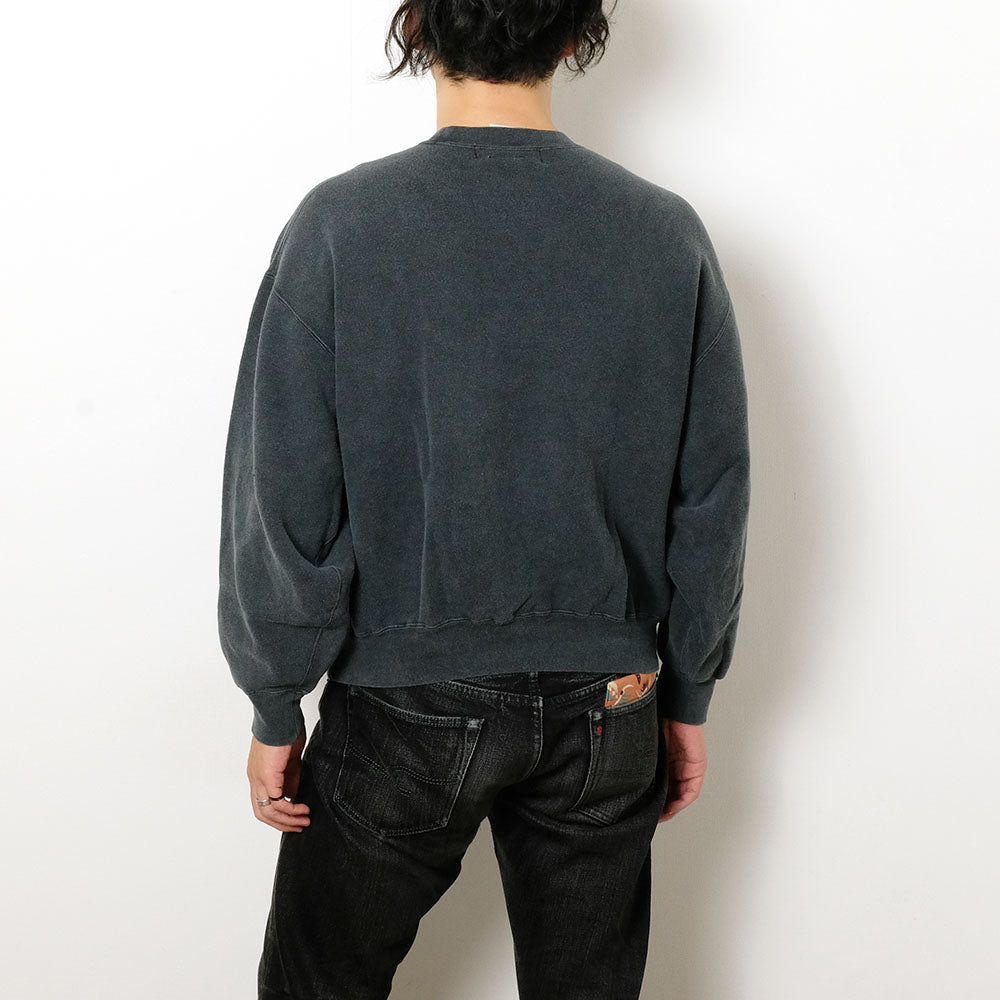 • This crewneck sweatshirt features a fluffy brushed fleece lining that provides warmth and a soft, comfortable feel against the skin. The outer fabric uses a dry and doughy fleece material, offering a natural texture that fits the body more comfortably the more you wear it. While it has a relaxed, oversized silhouette, the carefully calculated length and tightness of the ribs create a perfectly balanced shape that avoids excessive looseness. The special processing that "REMI RELIEF" has arrived at after years of research is carefully done at its own factory. By using traditional direct dyes and combining them with oxygen to slowly fade the dyes over a long period, a texture similar to that of old clothes damaged over time is created.