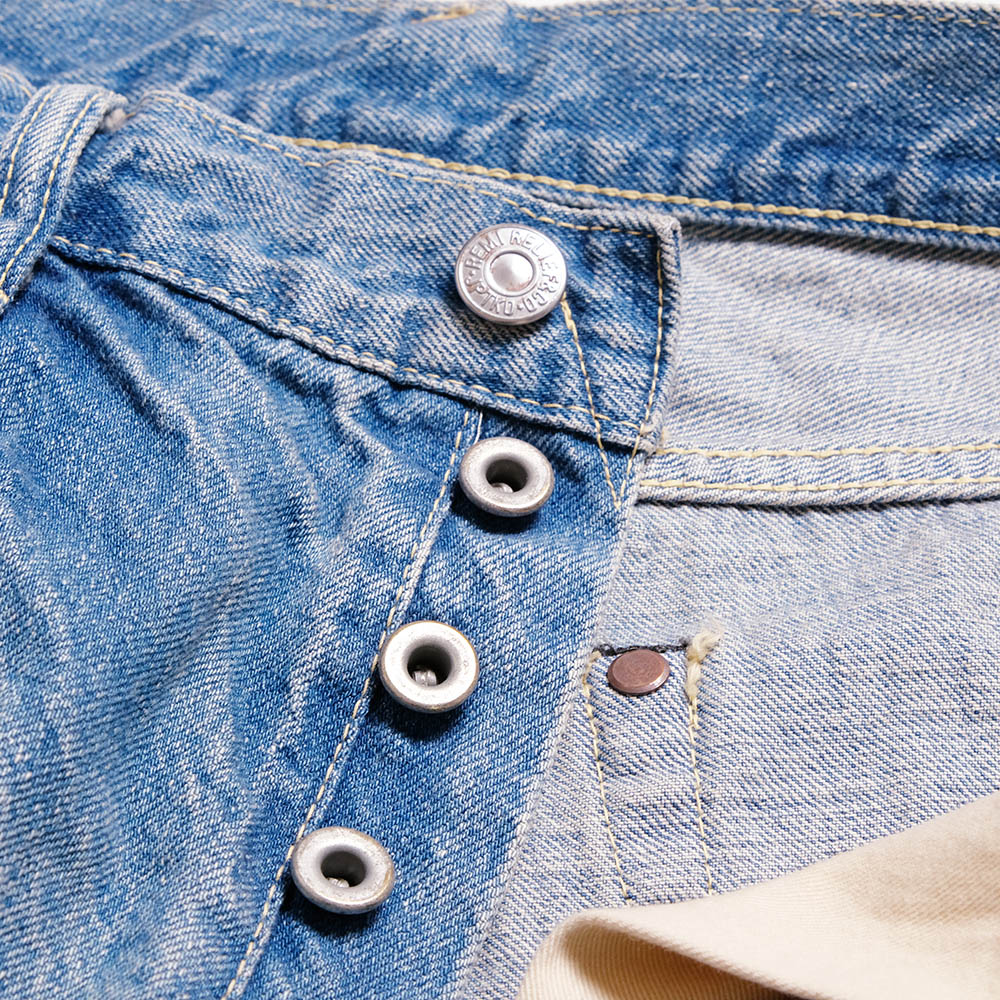 • The 1954 jeans faithfully reproduced by REMI RELIEF are introduced from the new "RRV Series". Incorporating vintage denim details like donut buttons and hidden rivets, REMI RELIEF has faithfully reproduced the look of the era without modern adjustments, paying meticulous attention to every detail from sizing and fabric to sewing. Focusing on classic details, iron buttons are used. They will rust over time, deepening their vintage character with wear. REMI RELIEF has faithfully reproduced the design of the era down to the smallest details, including the button fly and traditional sewing specifications. You can enjoy these jeans for many years to come as a timeless item where past and present intersect.
