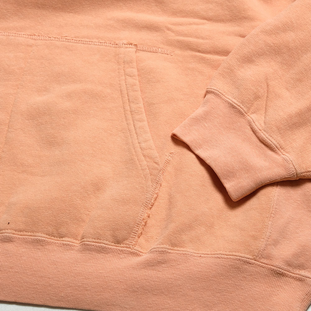 • Thick 14-count cotton yarn is knitted on an old-style knitting machine to reproduce the "Santobi fabric with fleece-lined (Fabric knitted loosely by skipping three of the loops of the fleece lining.)" found in vintage sweatshirts. Yarns made from organic cotton waste have excellent stiffness and tension, and even when tailored into a lightweight fabric with reduced thickness, the silhouette remains unchanged. Also, the pile lining is easy to use except in midsummer and has a dry feel. The special processing that "REMI RELIEF" has arrived at after years of research is carefully done at its own factory. By using traditional direct dyes and combining them with oxygen to slowly fade the dyes over a long period, a texture similar to that of old clothes damaged over time is created. The silhouette is a loose, relaxed fit. It is a boxy silhouette with generous shoulder widths.