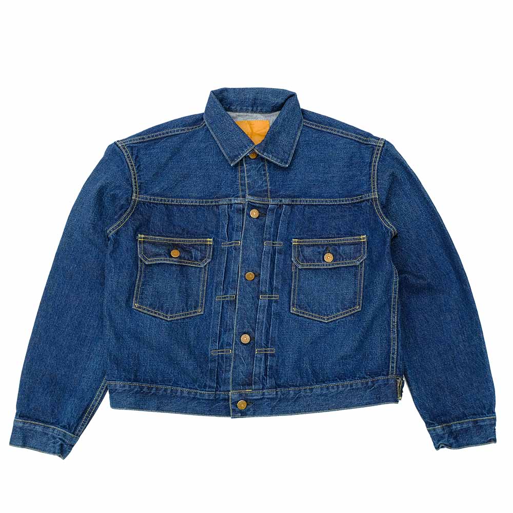• "REMI RELIEF" introduces this vintage jacket, a faithful reproduction of the 2nd type from 1954. "REMI RELIEF" incorporates the characteristics of denim jackets of the time in every detail and pays particular attention to the size, fabric, and sewing. Without adding modern interpretations, the original charm of the vintage is reproduced as it is. The size is based on the vintage model of 1954, and the length and sleeve length are the same regardless of size, while only the width and shoulder width are different. The unique size balance of the time is reproduced, and an authentic silhouette can be enjoyed. The original denim fabric was developed from scratch to reproduce the texture faithfully and faded look of the period. 100% cotton threads are used for stitching so that you can enjoy the aging. The more you wear it, the more it will become your own unique piece of jacket. In addition, the iron buttons are used, and as you use them, they will naturally rust, giving them a vintage look and feel. The BLUE color is finished with rust appearing on the buttons through processing, giving it a realistic feel as if it has been used for many years.