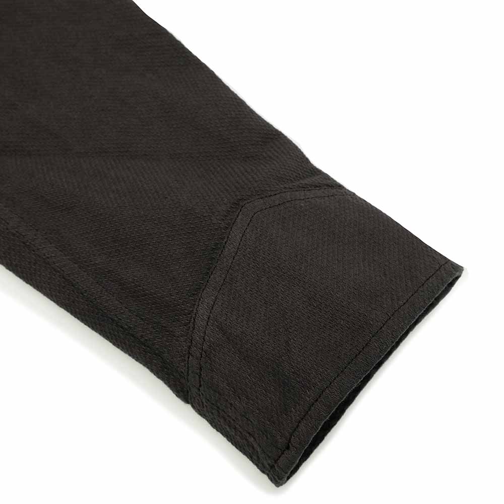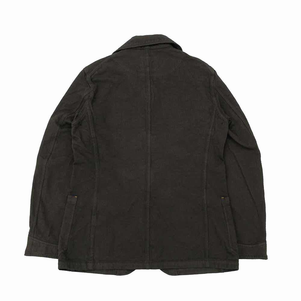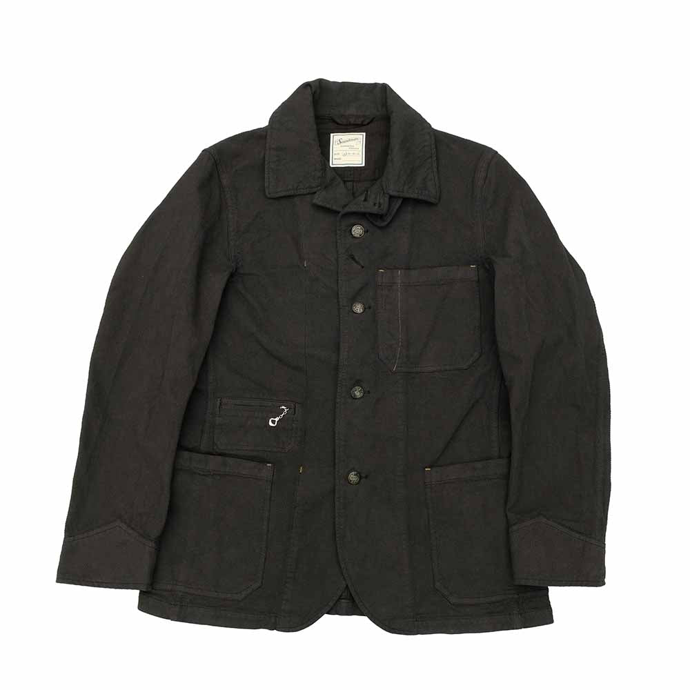 • The soundman's representative coverall jacket is inspired by the uniforms of fictional British steel mills in the good old days. It incorporates elements of tailored patterning, such as sleeve attachment and cutting, for a wide range of outfits. Made of cotton Sashiko dobby material and garment-dyed in carbon black. Ball-bio treatment is applied, creating an uneven color fade that makes the most of the Sashiko fabric. The buttons are original metal change buttons with an aging finish (polished after spray painting).