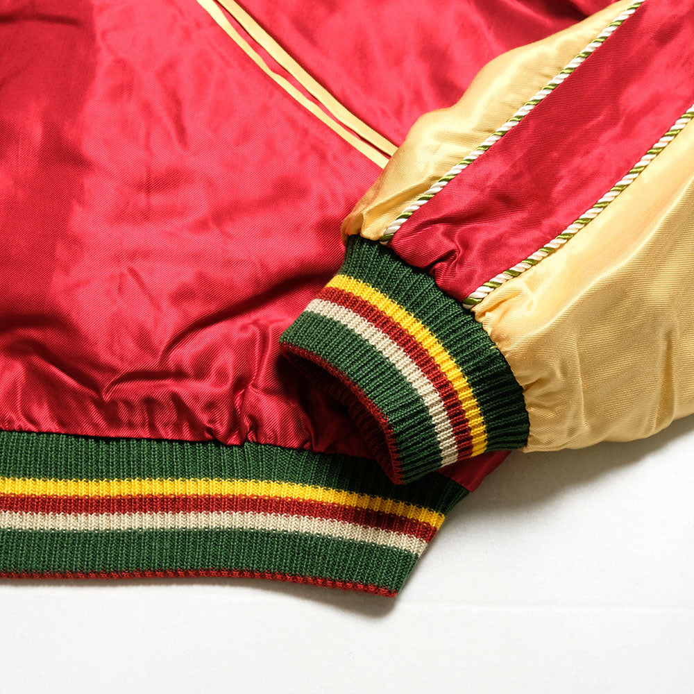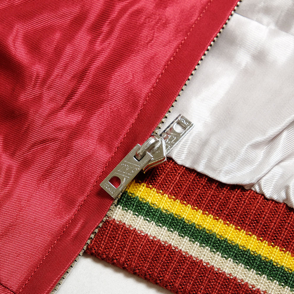 • Tailor Toyo has been making Sukajan(Souvenir Jacket) since the days of its predecessor "Kosho," and its past products are now regarded as “vintage". In response to numerous customer requests, this work is reproduced with current techniques for the first time in about 30 years, based on the Sukajan produced by Taylor Toyo in the 1990s. The embroidery of the eagle depicted in orange gradation, which stands out against the wine-colored body, is superb, and the multi-colored ribs tighten the overall balance.