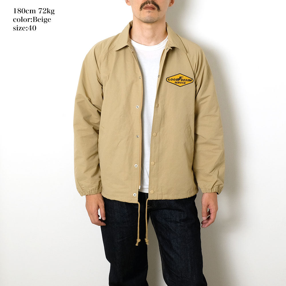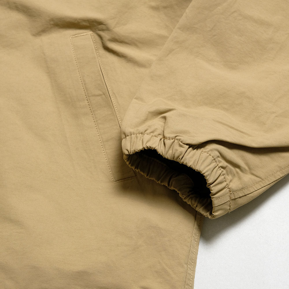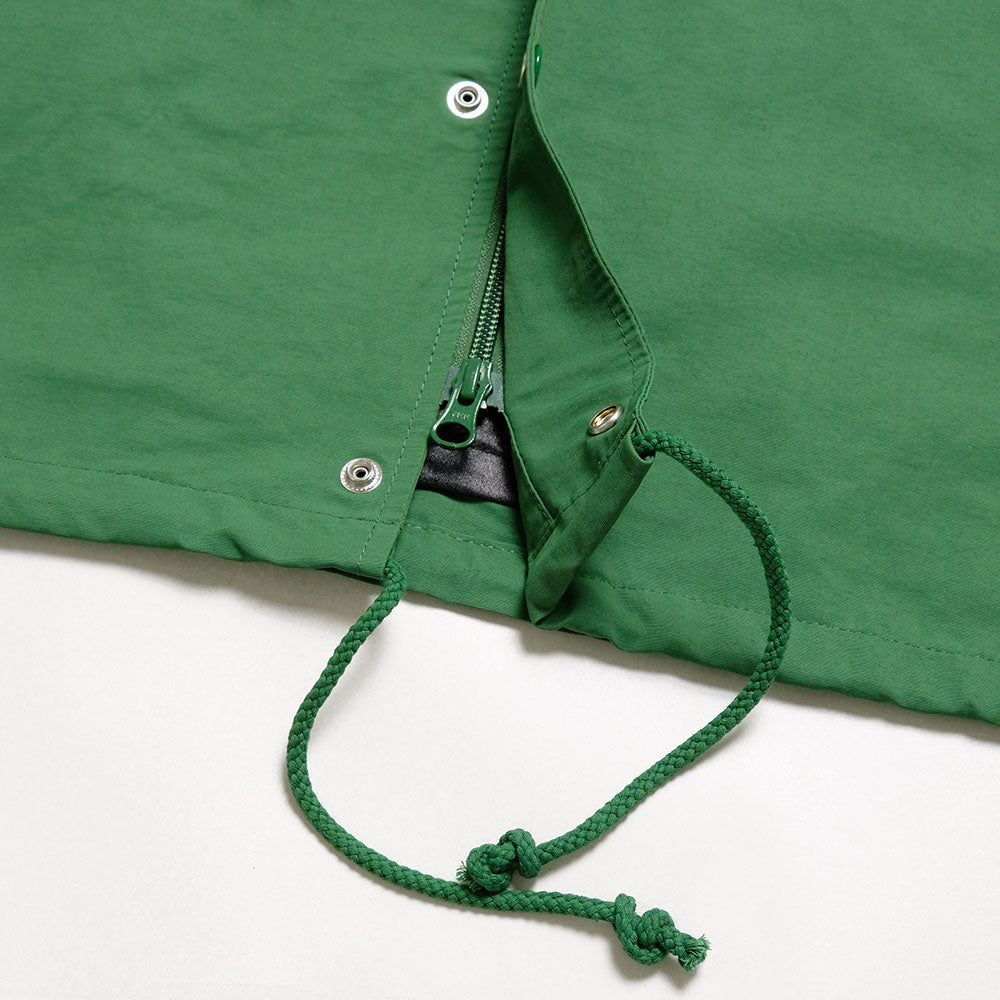 • This coach jacket is made of fabric woven with cotton for the weft and nylon for the warp. The front has a double structure with snap buttons and a zipper. The zipper can be opened from both the top and bottom (double zipper), so that it can be adjusted when squatting or riding a motorcycle.