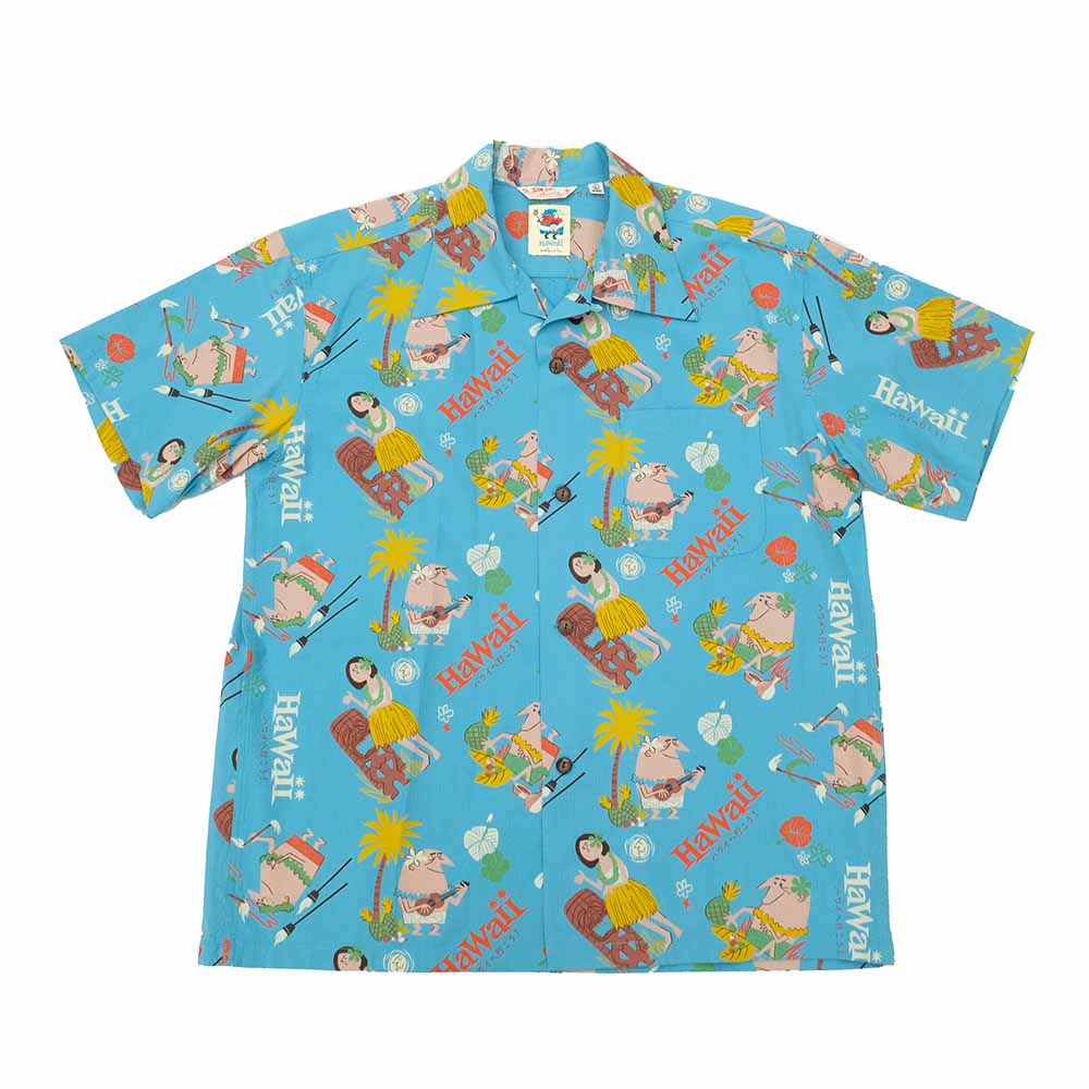 SUN SURF - COTTON SEERSUCKER OPEN SHIRT - TRIP TO HAWAII - by 柳原良平 with MOOKIE SS39537