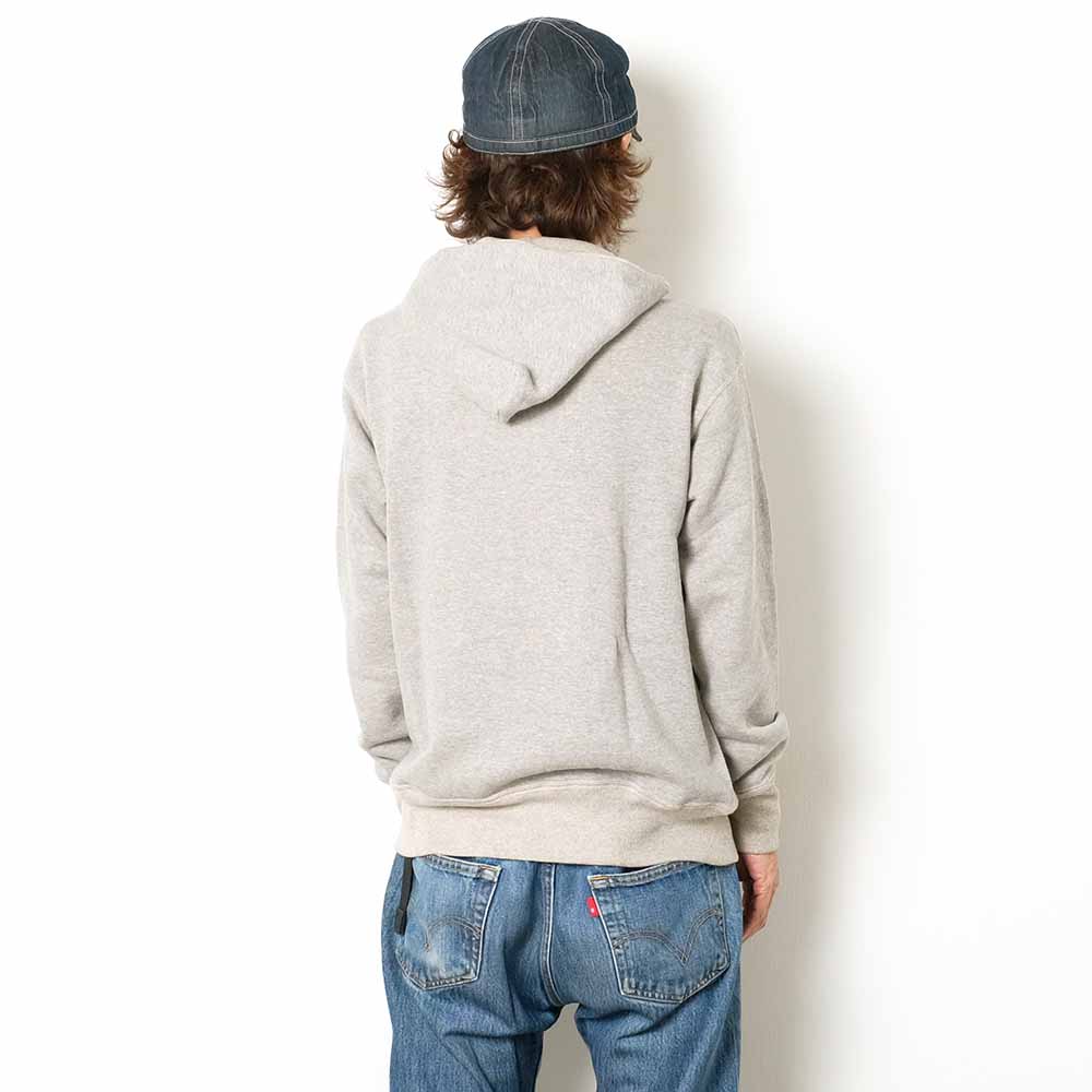 • "WAREHOUSE" has reproduced the set-in-sleeve hoodie with two-needle sewing. While an unchanging standard design, the hood further enhances the fit due to the distinctive ribs on the back of the hood and pocket openings. The front pocket functions not only as accents but also as reinforcements.