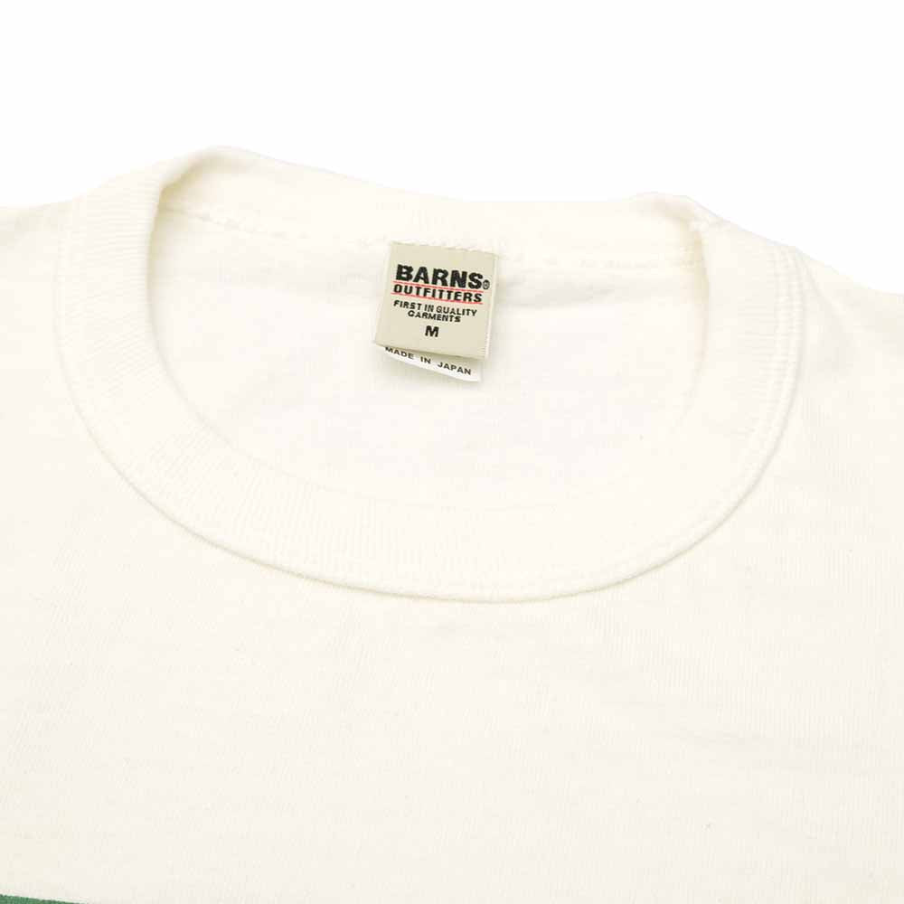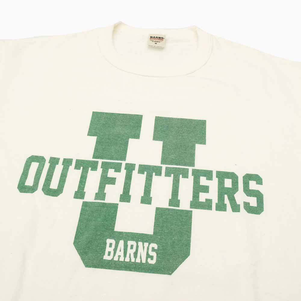 • This T-shirt is made with "BARNS" original body, which is made slowly over time using a valuable loop-wheeled knitting machine from the Taisho era. The fabric is knitted with air over time, making it soft and comfortable to wear. The design is inspired by the college logo of the fictional university “BARNS OUTFITTERS UNIVERSITY”.