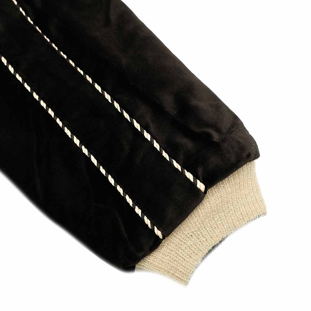 • To commemorate Toyo Enterprises' 60th anniversary, the company has reproduced a souvenir jacket featuring stenciling considered ultra-rare among vintage items. At the time, cushion covers with Yokoburi embroidery (Free-motion embroidery), as well as Sukajan, were popular souvenirs for American soldiers, and cushions combining embroidery and stenciling were also available as their variations. However, jackets made in this style are extremely rare, making this truly a special item.
