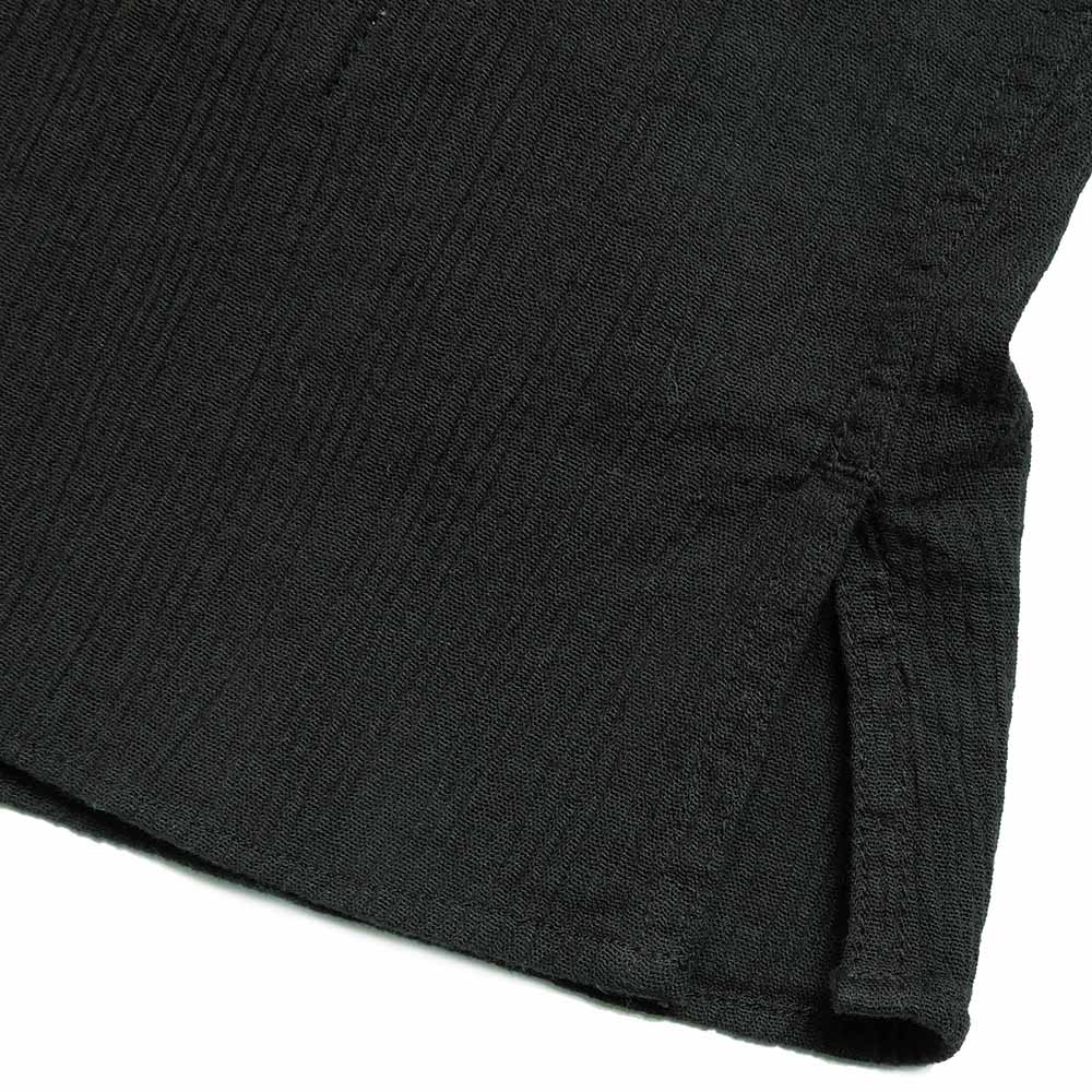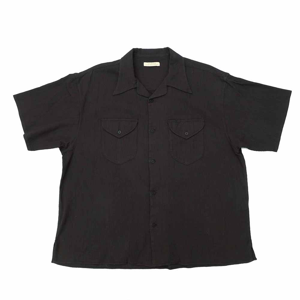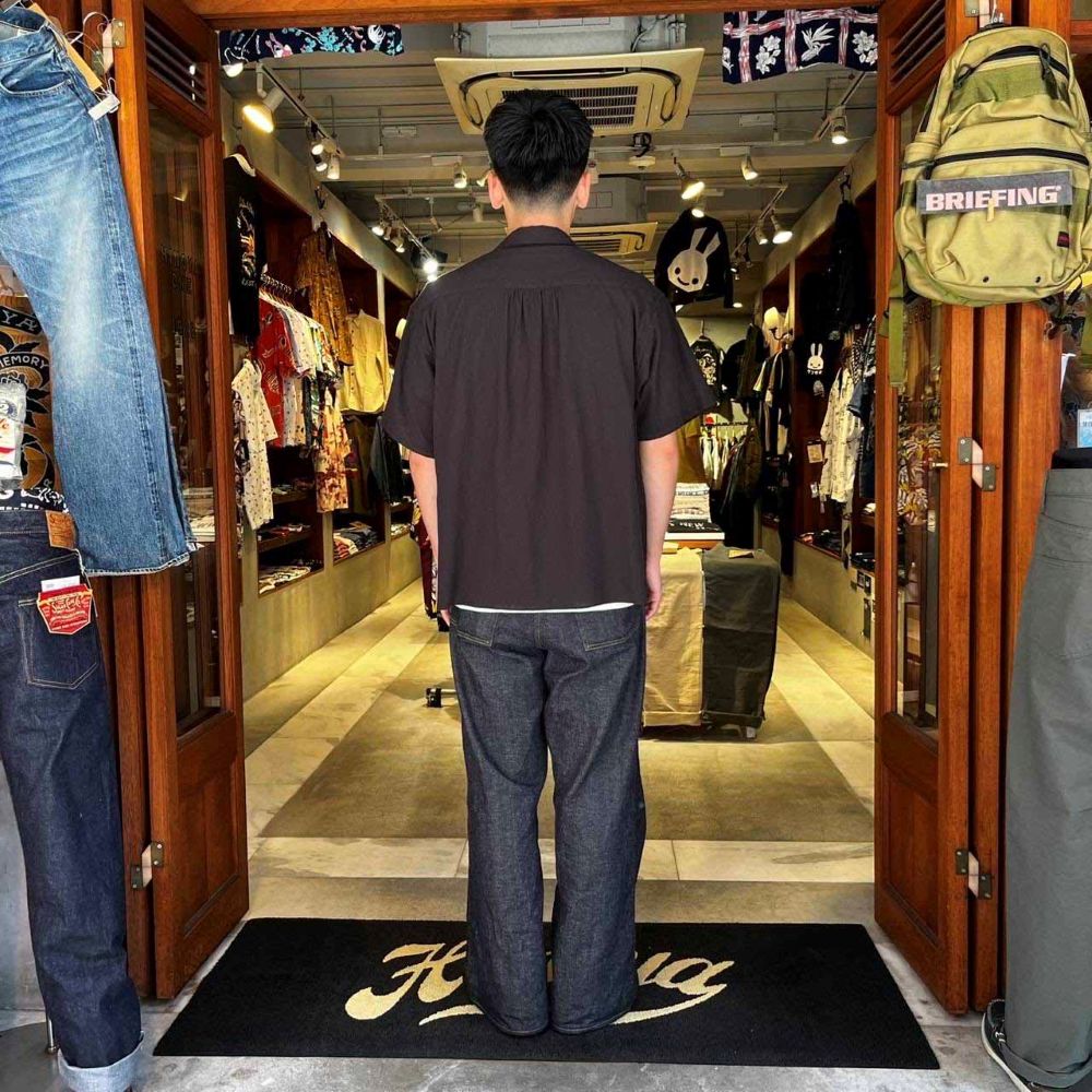 • This shirt has a very beautiful and classy look with a long point collar with an arched shape named "Swallow Collar". Also, this shirt, designed with the image of sports shirts from around the 1940s, has a moderately relaxed feeling with the uniquely shaped double pockets on the front and the relaxed width of the body. This shirt is made of traditional Takashima-Chijimi material, which has a smooth and comfortable feel without being sticky, by using high-twisted yarn for the crepe weft and making it ridged. The density of the yarns in the fabric is also loose, which makes it quick-drying, sweat-absorbent, and breathable.