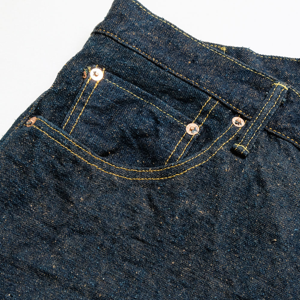 ※The denim is highly uneven in color and weave. In addition, it has some ball-shaped neps in some areas. Please understand it as a characteristic of the product.