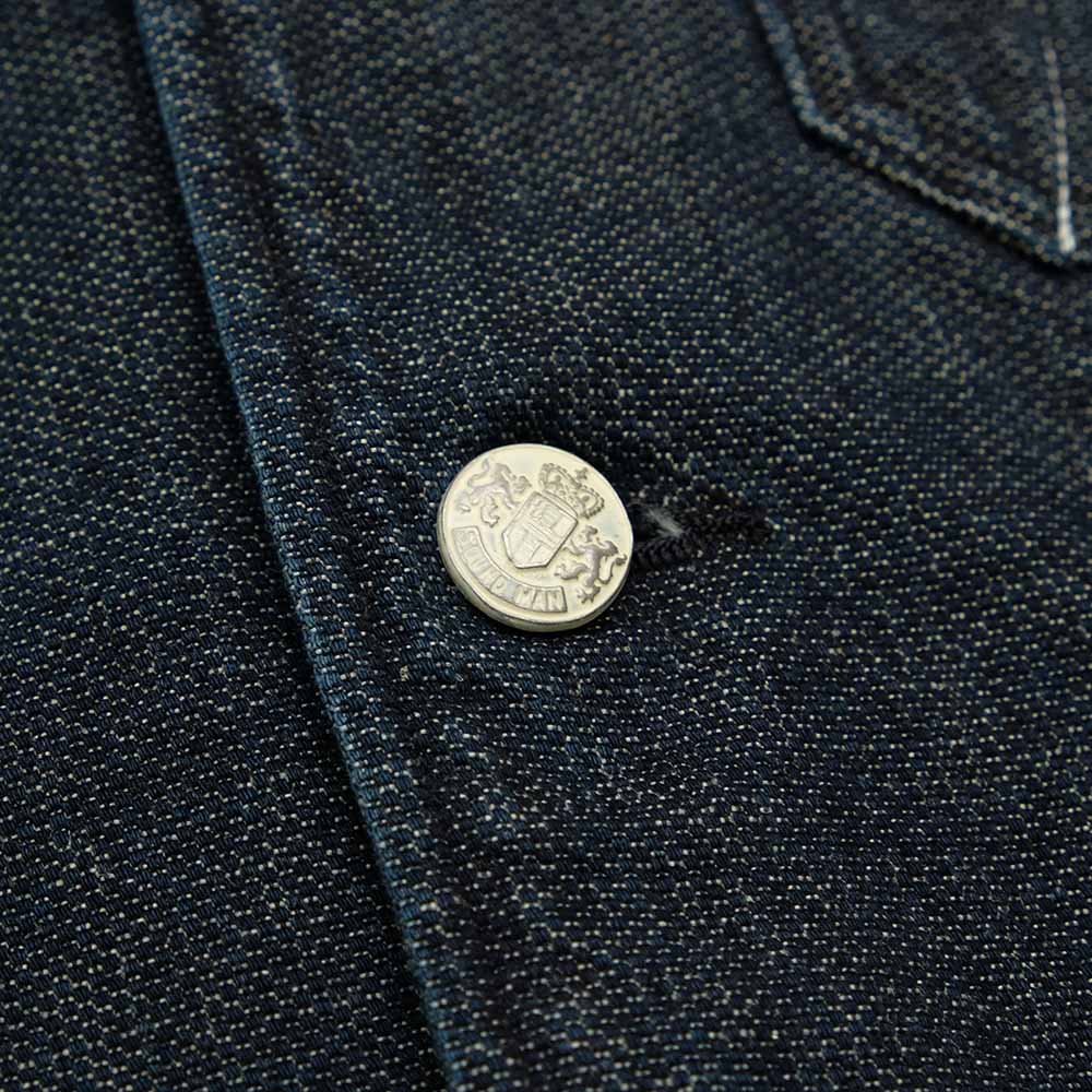 • The soundman's representative coverall jacket is inspired by the uniforms of fictional British steel mills in the good old days. It incorporates elements of tailored patterning, such as sleeve attachment and cutting, for a wide range of outfits. The body is made of honey-cord denim woven with indigo yarn for the warp to evoke the image of a beehive. Ball-bio-treatment is applied to give it a worn-in look from the beginning. It also features original metal change buttons that adopt an aging process in which they are spray-painted white and polished.