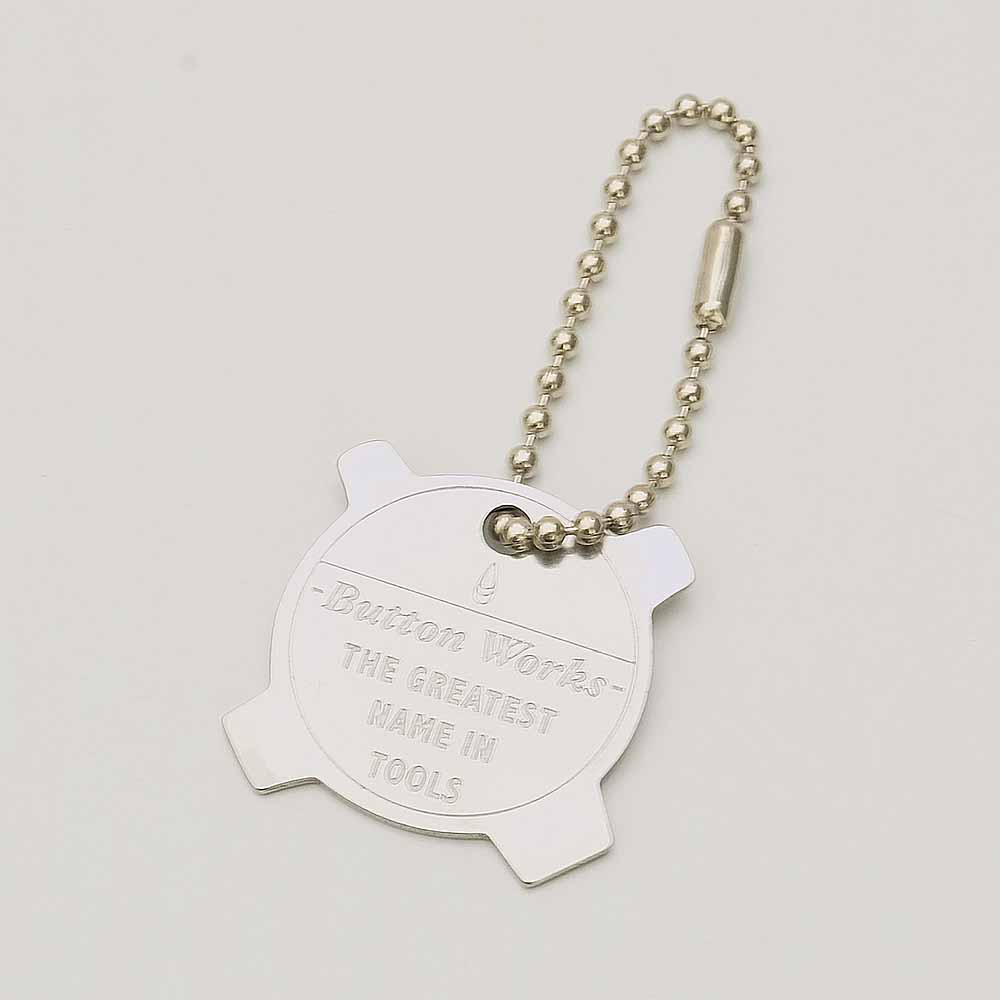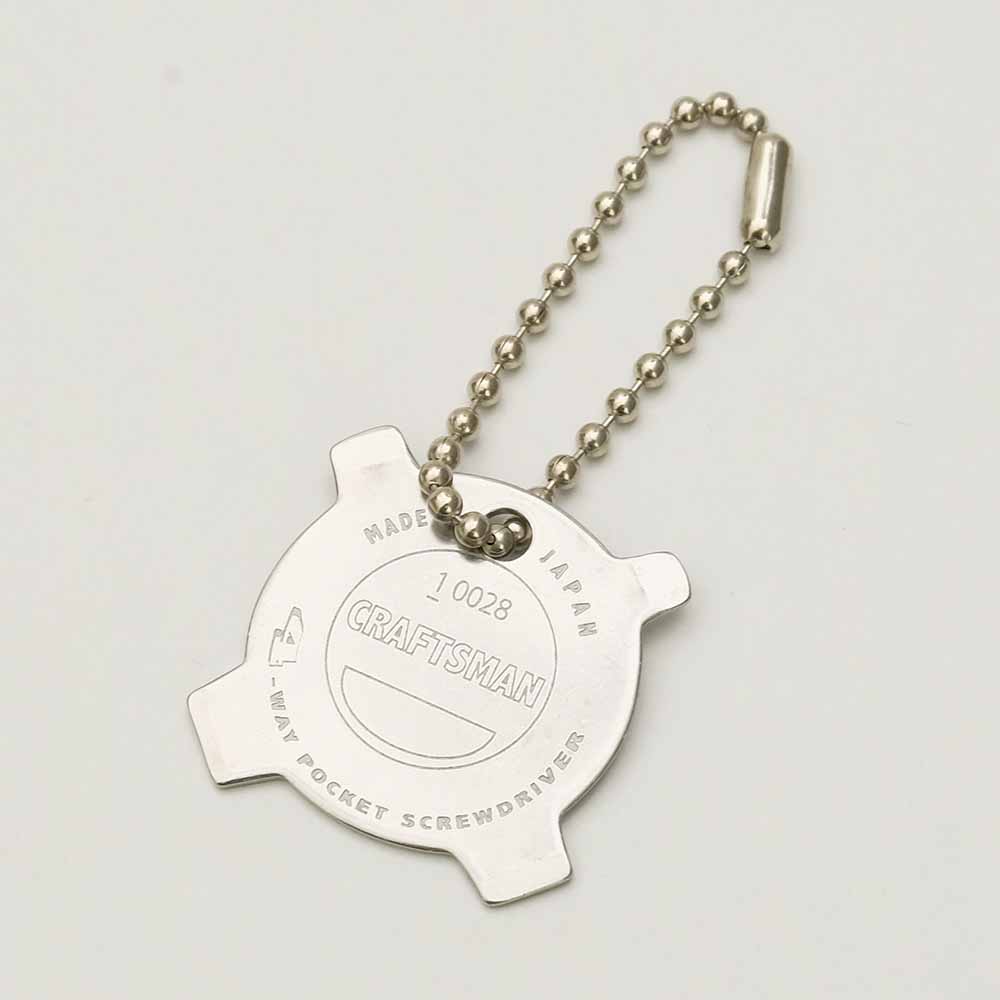 - This original keychain in the shape of a screwdriver (flathead screwdriver) by Button Works is inspired by the advertisement item of the American tool manufacturer "CRAFTSMAN. The round form and compact size are attractive, and it is equipped with a flathead screwdriver of different sizes in four directions. The familiar drop mark and "Button Works" logo is engraved on each side of the keychain.