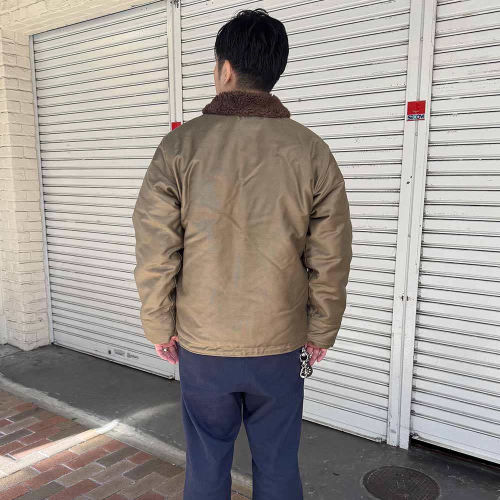 • The N-1 Winter Jacket is said to have been officially adopted in 1943 and was delivered in large quantities in 1944, but this NAF1168 was a prototype manufactured just before that. NAF stands for Naval Aircraft Factory. It is said that this jacket was made for workers at an aircraft factory exclusively for the Navy. The NAF1168 features an alpaca liner, a button and zipper front, and a hem with hanging loops for attaching setups and equipment, and even the cuffs have alpaca. The fact that it continued to be worn as a Navy deck jacket for a long period after World War II shows how popular this type was with the crews.