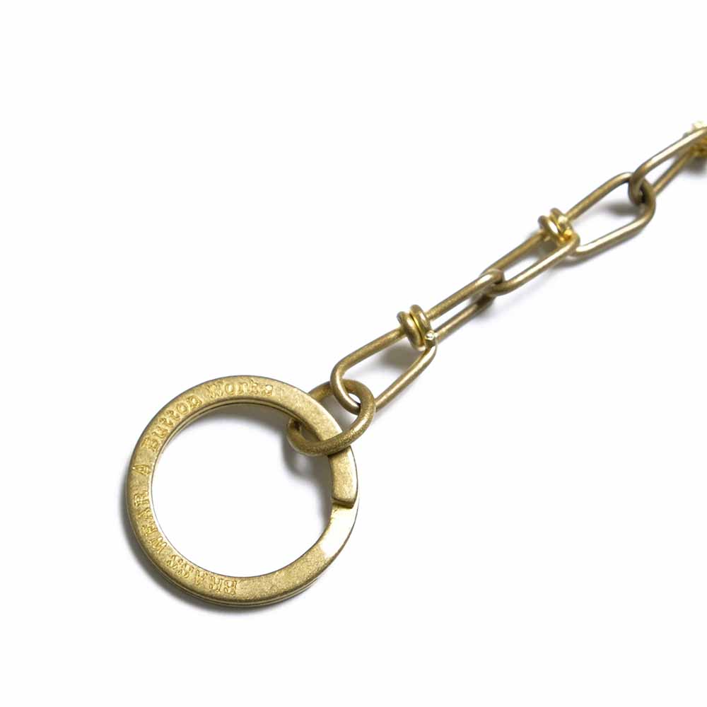 • This keychain features Button Works' original brass the hanging clip with the familiar anchor mark engraved on it, the vintage-style brass chain, and the original double rings. Unlike normal brass plating, this keychain is finished with a special plating technique that is dull without luster. The more you use it, the more it will be better with age.