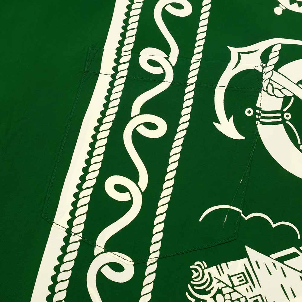 • This Aloha shirt has been reproduced by Sun Surf based on the vintage Aloha shirt. "TOWN CRAFT" was created in the late 1920s as a private brand of J.C. Penney, a long-established department store that operated mainly in the continental United States. The original of this Aloha shirt by the brand depicts and combines items related to the ship's voyages. A number of other Aloha shirts produced with similar motifs have been found, indicating their popularity at the time. In addition to Hawaii, stores in resort areas such as Florida and California had a high percentage of nautical-related patterns.