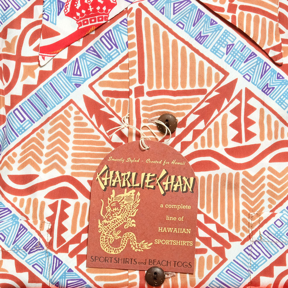 The brand “Charlie Chan,” which created the original of this work, started as a tailor store, already setting up shop on Nuuanu Street, the center of Honolulu, in the late 1930s, shortly after the birth of the Aloha shirts. Unusual among the first Aloha shirt brands, the company increased its customer base by vigorously advertising in the magazines and newspapers of the time. Like the Aloha brand by Ellery Chun and the Musa-shiya Shoten brand by Koichiro Miyamoto, it was one of the most important brands that supported the early days of Aloha shirts.