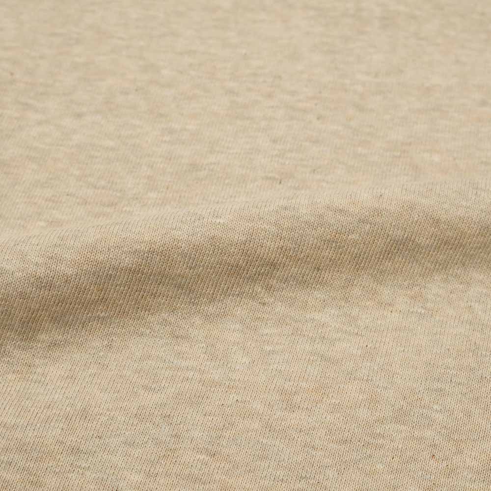 • The sandwiched ribs for the waist were created in the 1930s when the material for knitwear changed from wool to cotton. This sweatshirt has stretchy V-shaped ribs on the front and back neck and is sewn with 4-needle stitches. The set-in sleeves that fall vertically from the shoulders have a simple design with a slightly solid look, but the binder specification of the waistband will produce fades as it is worn.