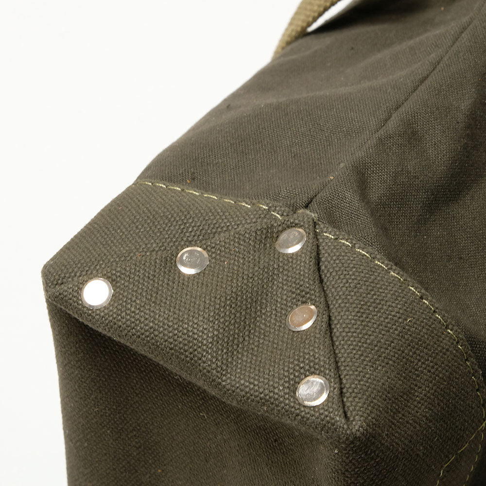 • If you don't want to carry a huge bag and you want to carry it comfortably like a Sacoche, but you want to put more items in it. This travel pouch is the perfect bag for such a situation. The material is army duck canvas. The material is moderately thick, yet has a high density and stiffness texture. The bottom is made of thick cotton canvas, typical of "Heritage Leather". It is made of the same cotton material as the main body, but the contrast between the two is unique due to the different weave of the two in a similar color. Normally, the top of the bag is rolled up, but if you suddenly have more luggage, you can open the top and use it as a bucket shoulder bag.