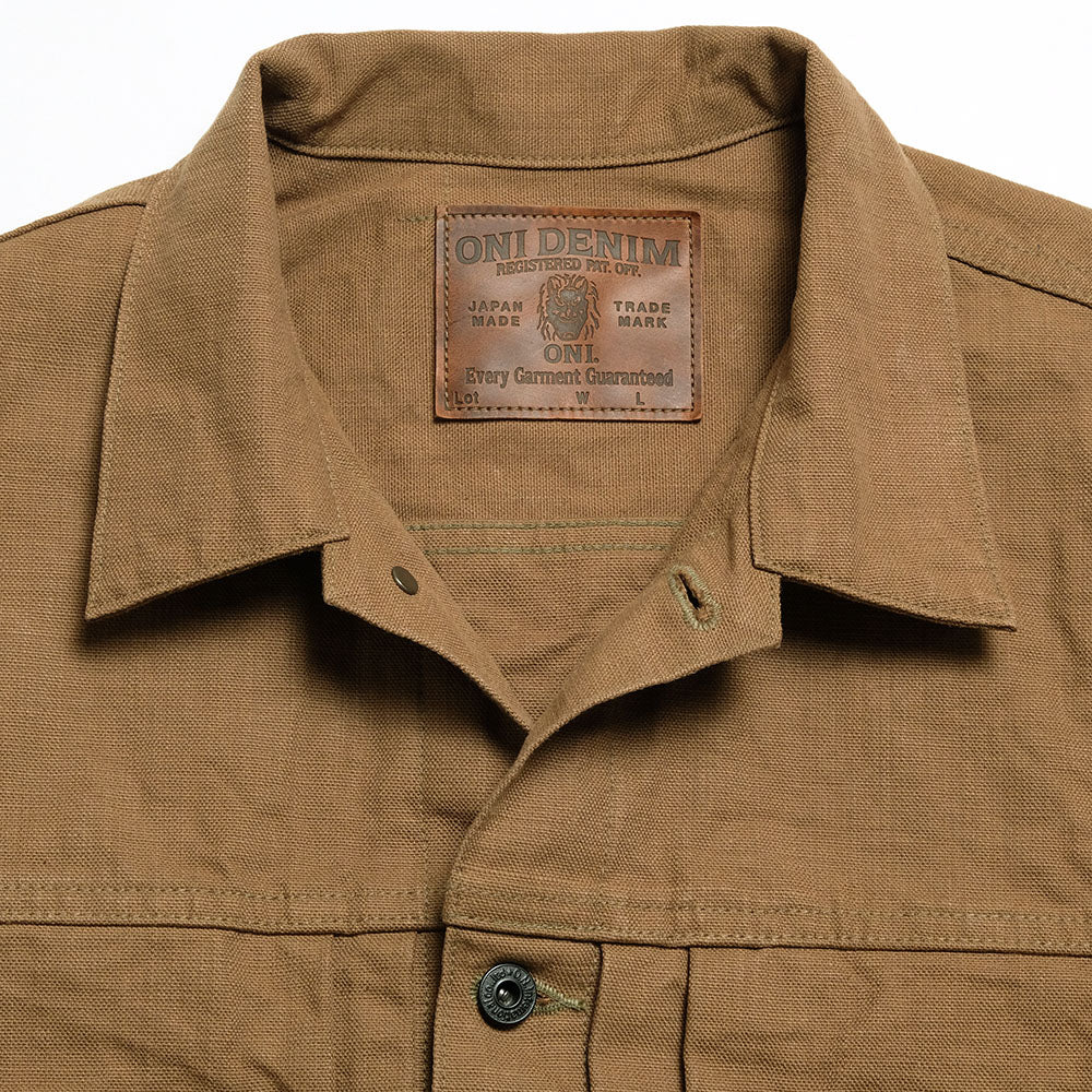 • The masterpiece of Oni Denim is back after a long time. It is made of cotton oxford fabric, not denim. Oni Denim would never make ordinary fabric. The fabric, woven with uneven and random thickness yarns, is quite thick for a plain weave. And since the dye is sulfide-dyed, you can enjoy the aging process through repeated wear and washing. The motif is the 2nd type trucker jacket, the most famous of the famous. The box style with a short length has been retained, while modern modifications have been made to the jacket, such as streamlining the armholes.