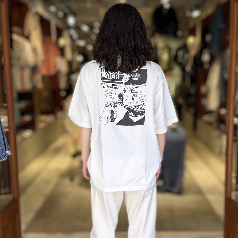 • One of the features often seen in vintage T-shirts is the "Marudo (round body)", which has no seams on the sides. This is because it was suitable for mass production without the need to sew the sides, and most of the T-shirts made in the U.S. at that time were of the "Marudo = TUBE" specification. However, with the changing times and the demand for diverse sizing options, side-seam designs gradually became the mainstream. To reproduce such items from that era, the “TUBE T-shirt” series features 16-count Open-End yarn, a loop-wheeled specification, and a faded look with pigment dyeing. This T-shirt is a loose-fitting design using the largest size available in a domestic factory. The design incorporates various subcultures of the 1980s and 1990s.