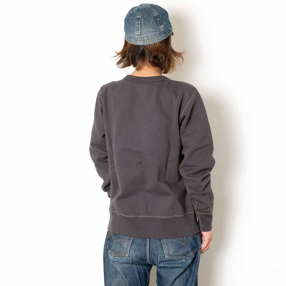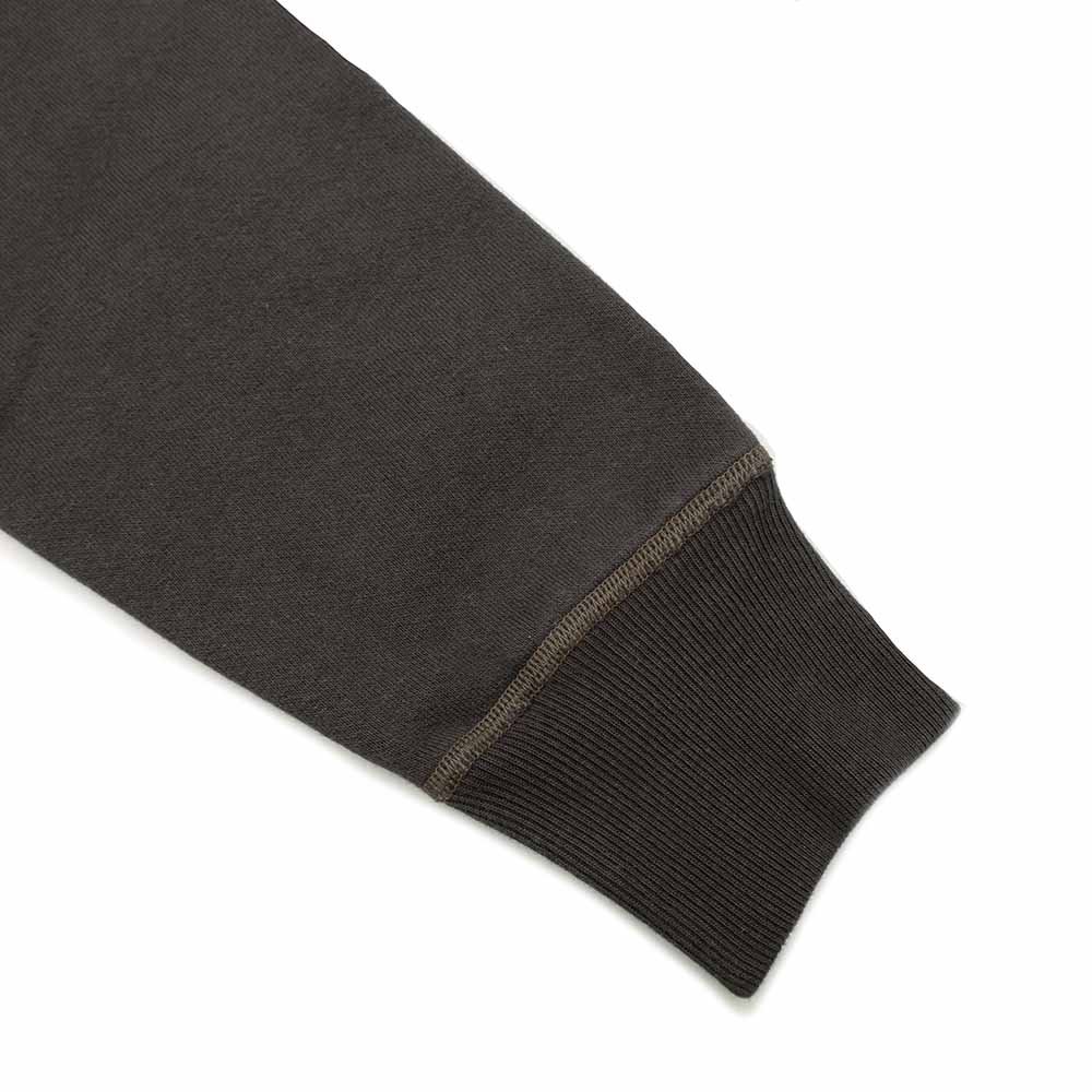 • The sweatshirt's material was changed from wool knit to a cotton material with a looped lining, and evolved into the daily wear of the American people as a "sweat-absorbent shirt". The military and military academies, where hard training was the order of the day, paid quick attention to sweatshirts, and they became to be handled at PX (post-exchange) scattered throughout the United States. The fabric for this sweatshirt is made on a loop-wheeled knitting machine that knits the fabric with uneven tension, the same as the method at that time, so it is a fabric with unique softness. The 4-needle flat seamer suitable for underwear is adopted for sewing, and the V-shaped gusset rib is sewn over the body.