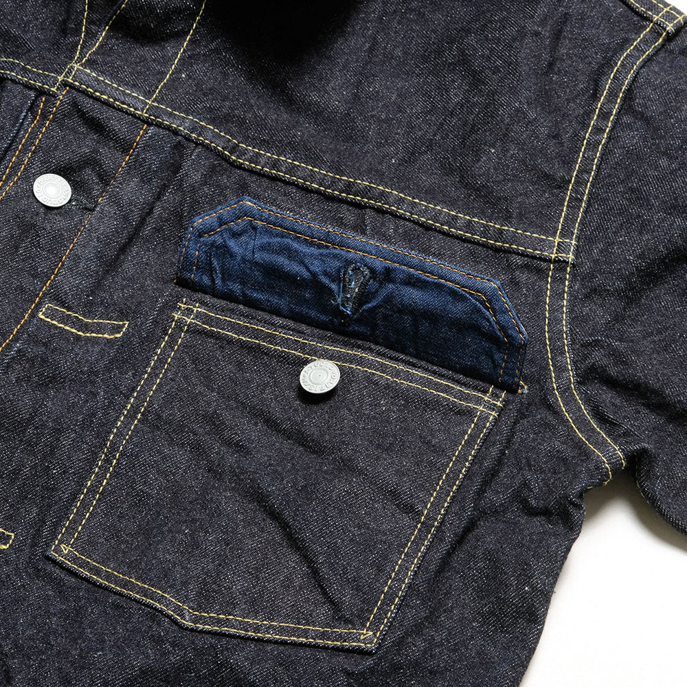 • 定番ジーンズのSD-900番台シリーズと同じ、14ozの右綾、『G3』デニムで制作したデニムジャケットです。デニムジャケットの中でも人気が高く、洗練されつつも無骨さが残る2ndタイプを採用。より着やすくするために改良を重ね、できる限り忠実なディテールを追求し、永く着ていただけるジーンズと並ぶ定番と成り得る1着が完成しました。