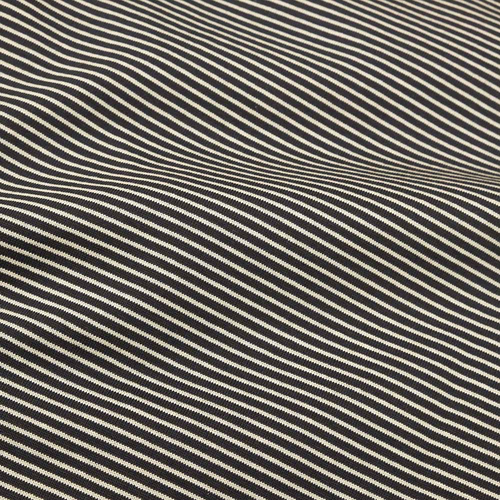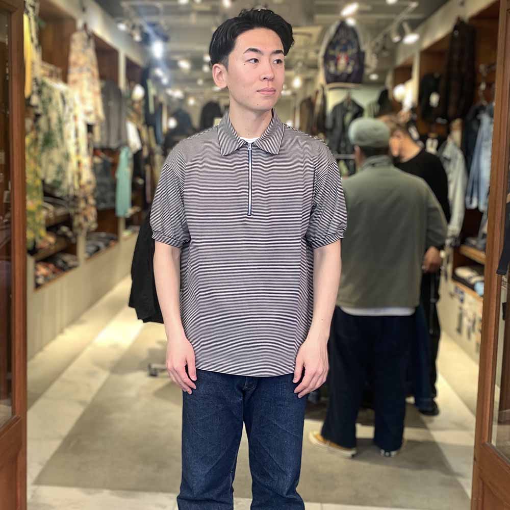 • 素材は抗ピリング性(毛玉防止)があり、シャリ感の強いMVS糸を使用してオリジナルで作成したボーダー天竺。度目を詰めて高密度に編み立てることで、ドライタッチで型崩れしにくい素材に仕上がっています。袖口にはリブを配し、サイドスリット入りで後ろ身の着丈を少し長めに設計されています。