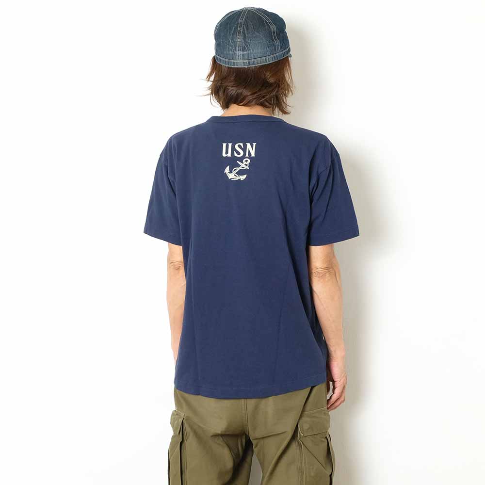 • BUZZ RICKSON'SからGOVERNMENT ISSUE T-SHIRT "U.S. NAVAL TRAINING SCHOOL" の登場です。官給品をイメージした若干肉厚で肌触りの良い生地にややゆったりとしたシルエットの日本製ボディを採用。デザインはフロントにはお馴染みのトレーニングスクールのロゴデザイン、バック襟下にはシンプルな文字デザインが描かれたTシャツとなります。一枚で着用したり、ロンTやシャツなどとのレーヤードスタイルはもちろんの事、お手持ちの色落ちしたジーンズとも相性抜群です。