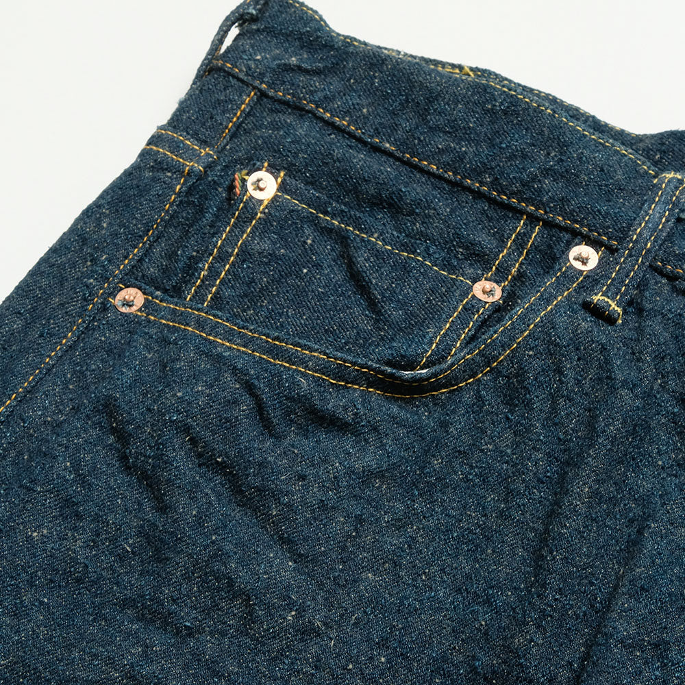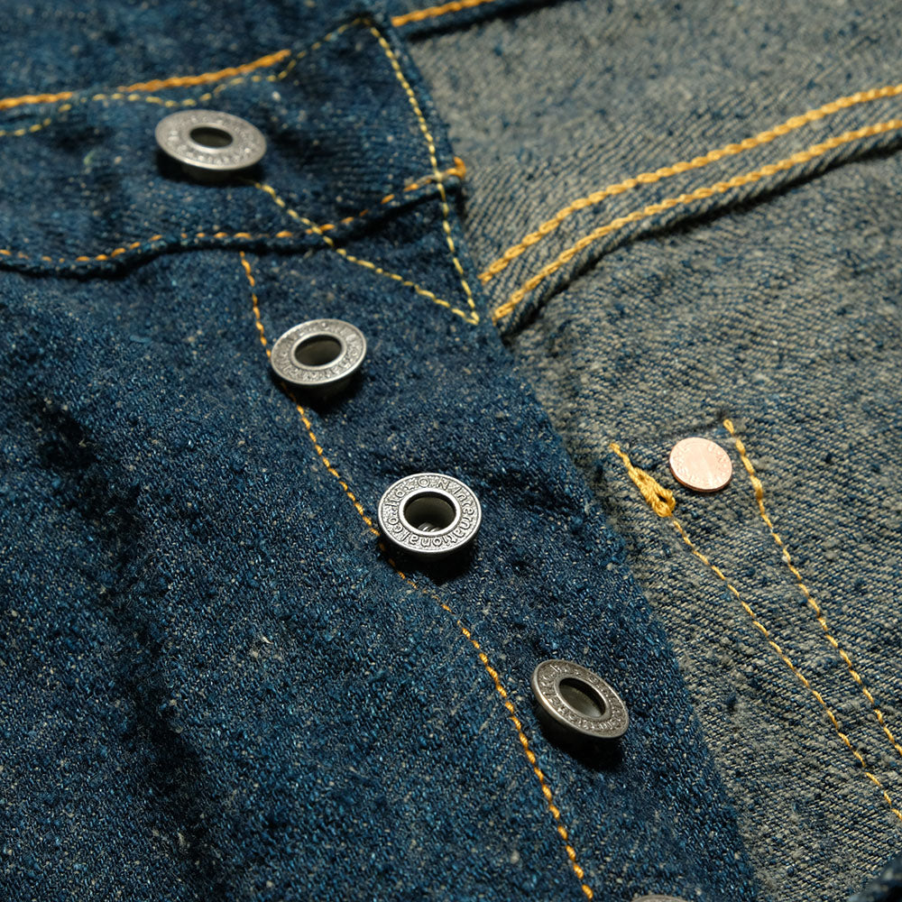 ※色ムラ、織ムラ強いデニムです。また、箇所によっては球状のネップが生じております。製品の特性としてご理解下さい。